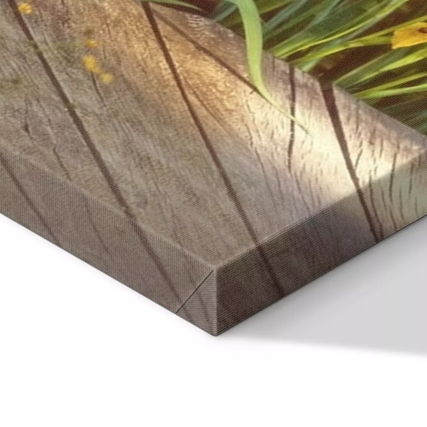 Das Motiv wird auf eine qualitativ hochwertige Leinwand gedruckt, die auf einen Blendrahmen gezogen wird. Da der Aufdruck die Seitenkanten bedeckt, muss das Bild nicht zusätzlich eingerahmt werden. Wir empfehlen außerdem Kompositionen aus mehreren Bildern, die ein harmonisches Ganzes bilden.