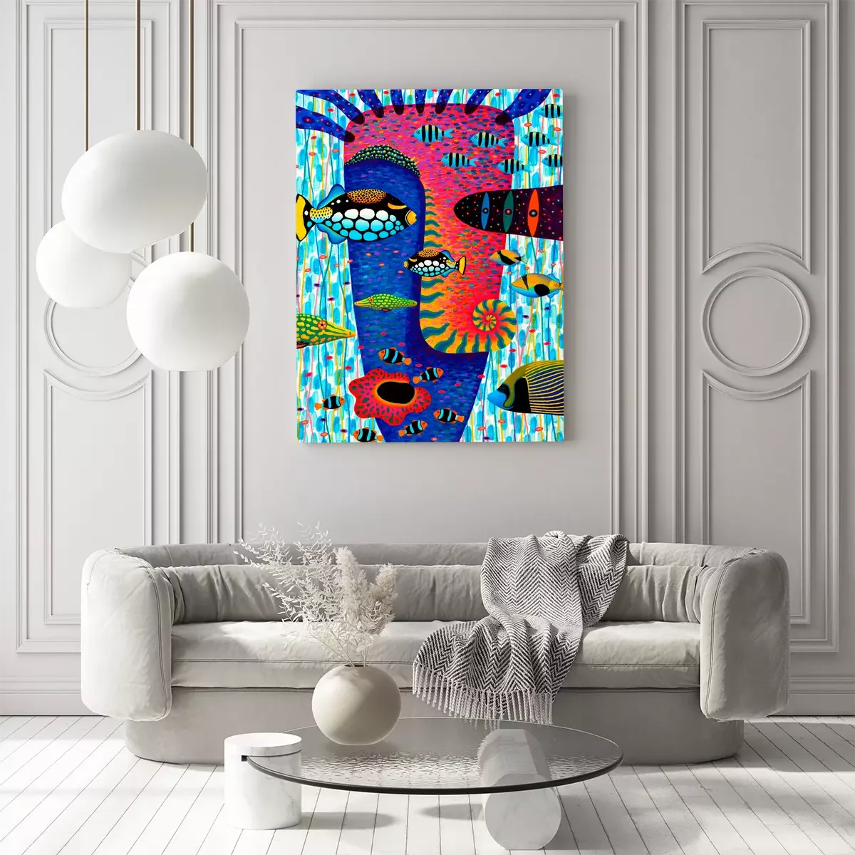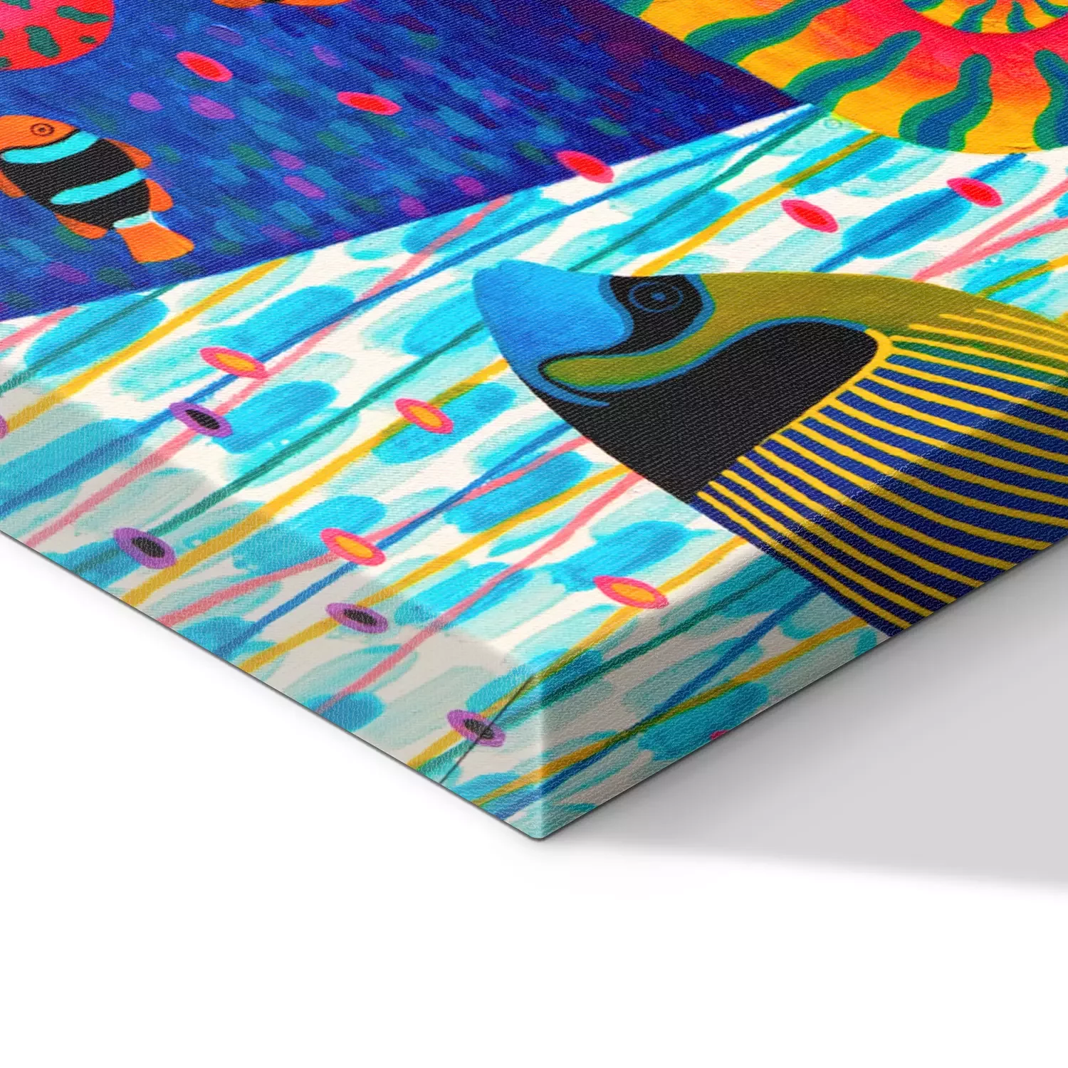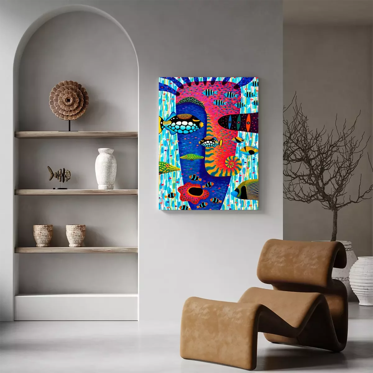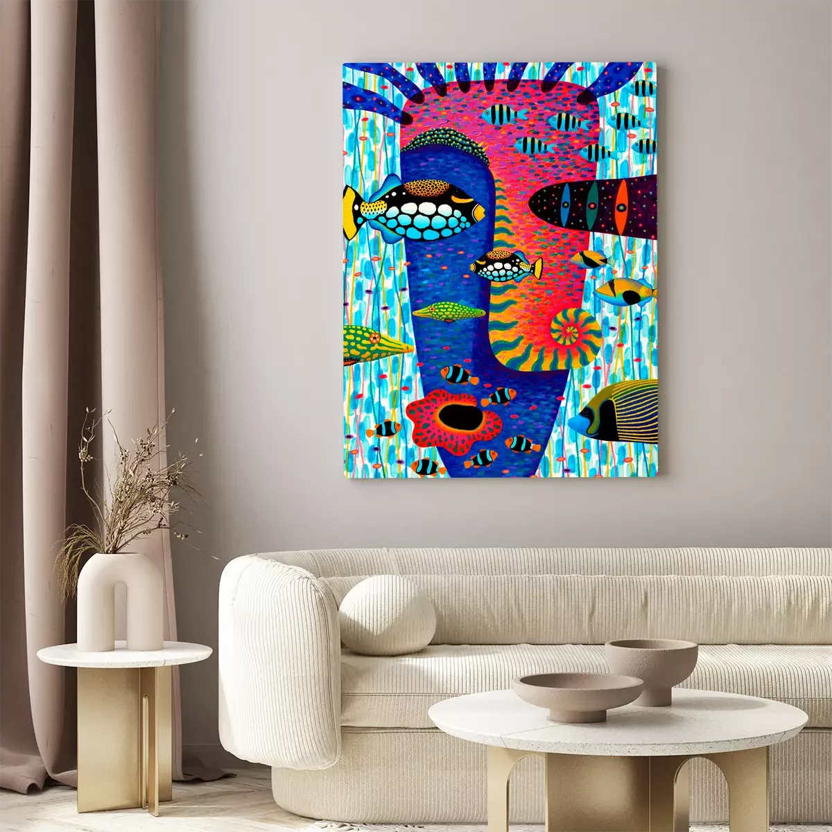 Farbenfrohe abstraktion mit fischen und korallenriff
