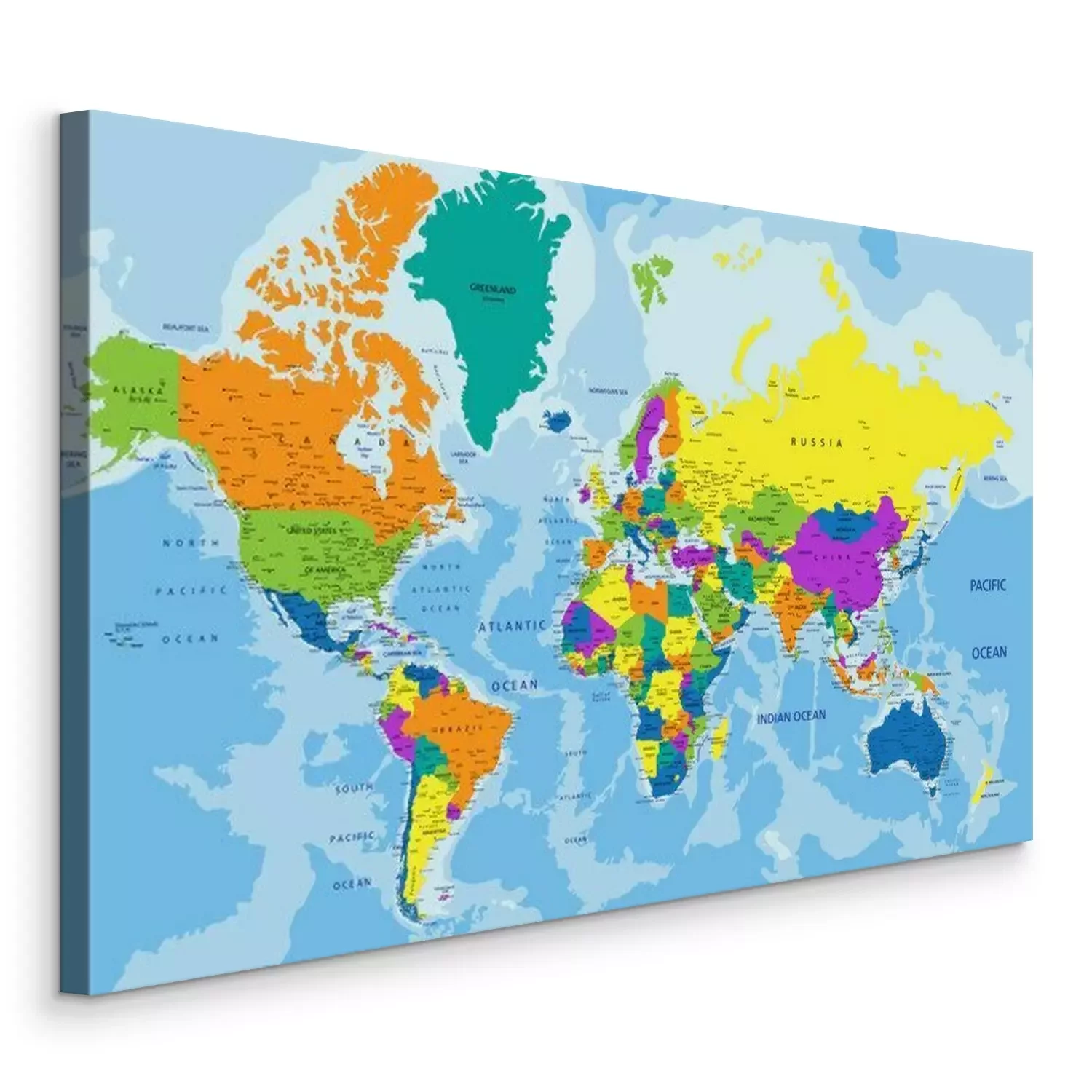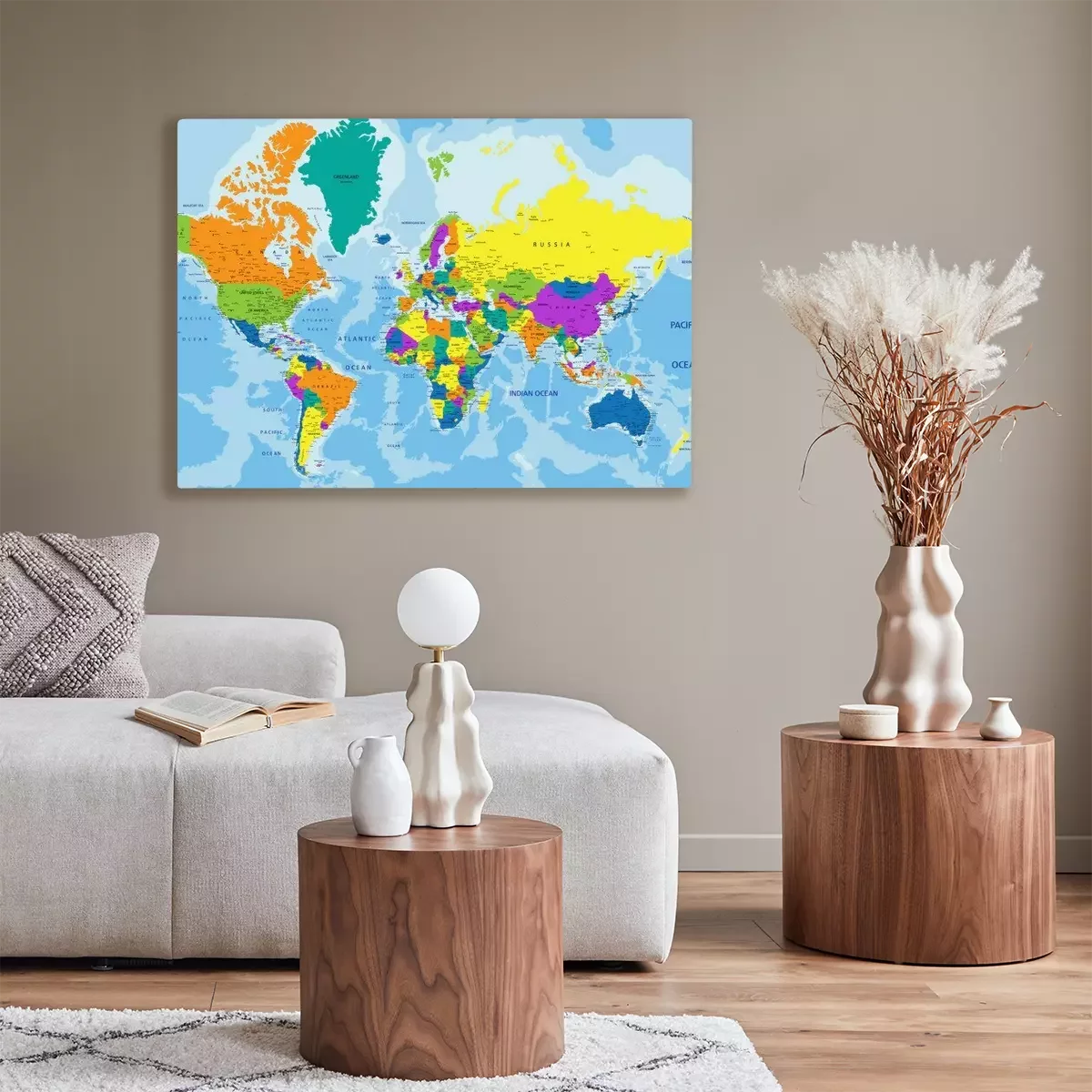 Bild: Farbenfrohe politische Weltkarte in Englisch