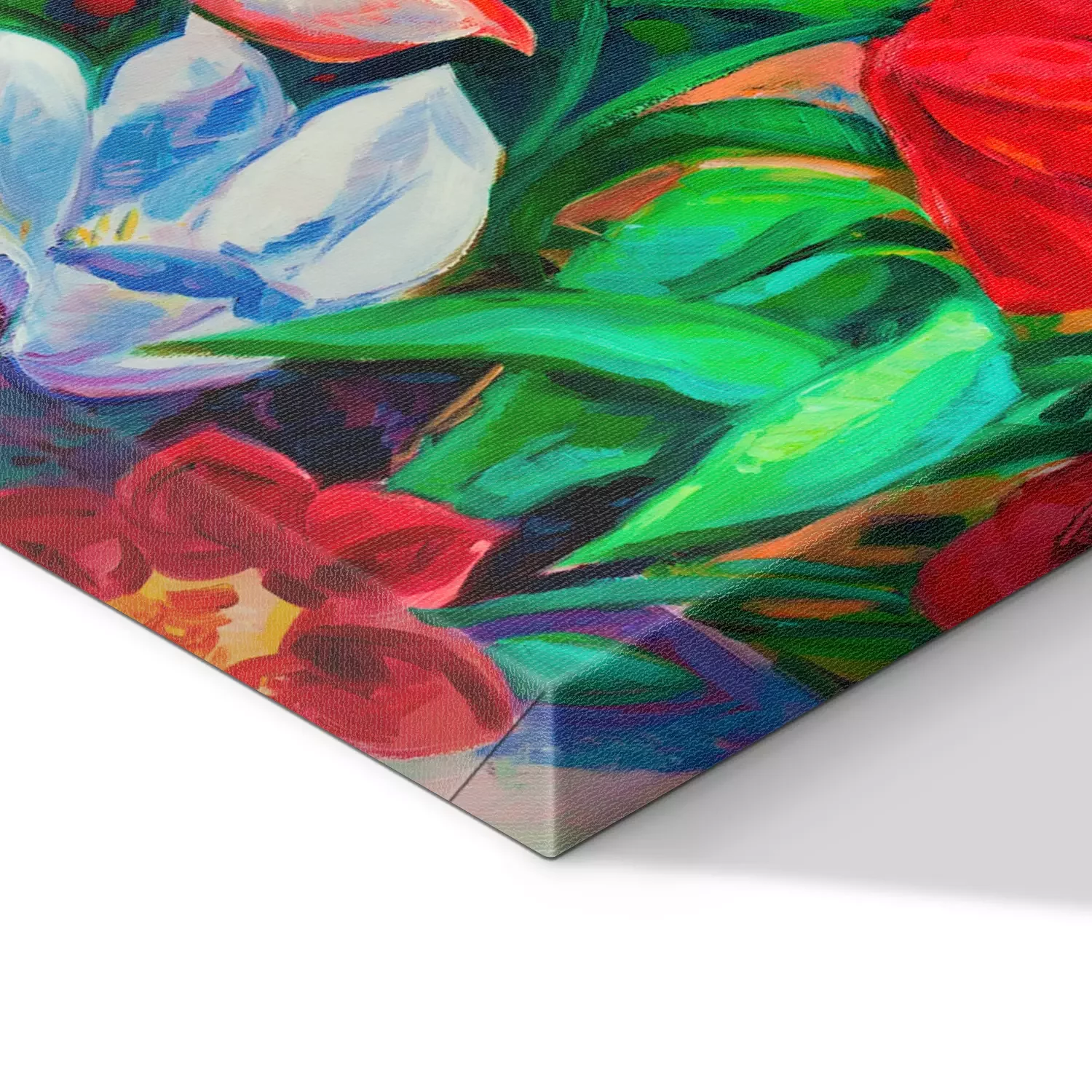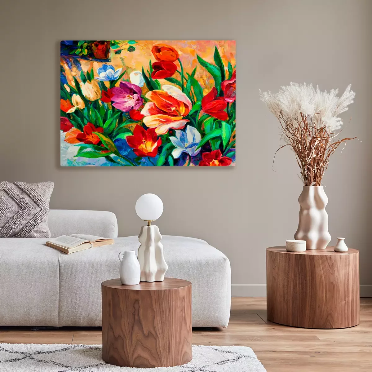 Farbenfrohe tulpen in einem garten im stil eines ölgemäldes