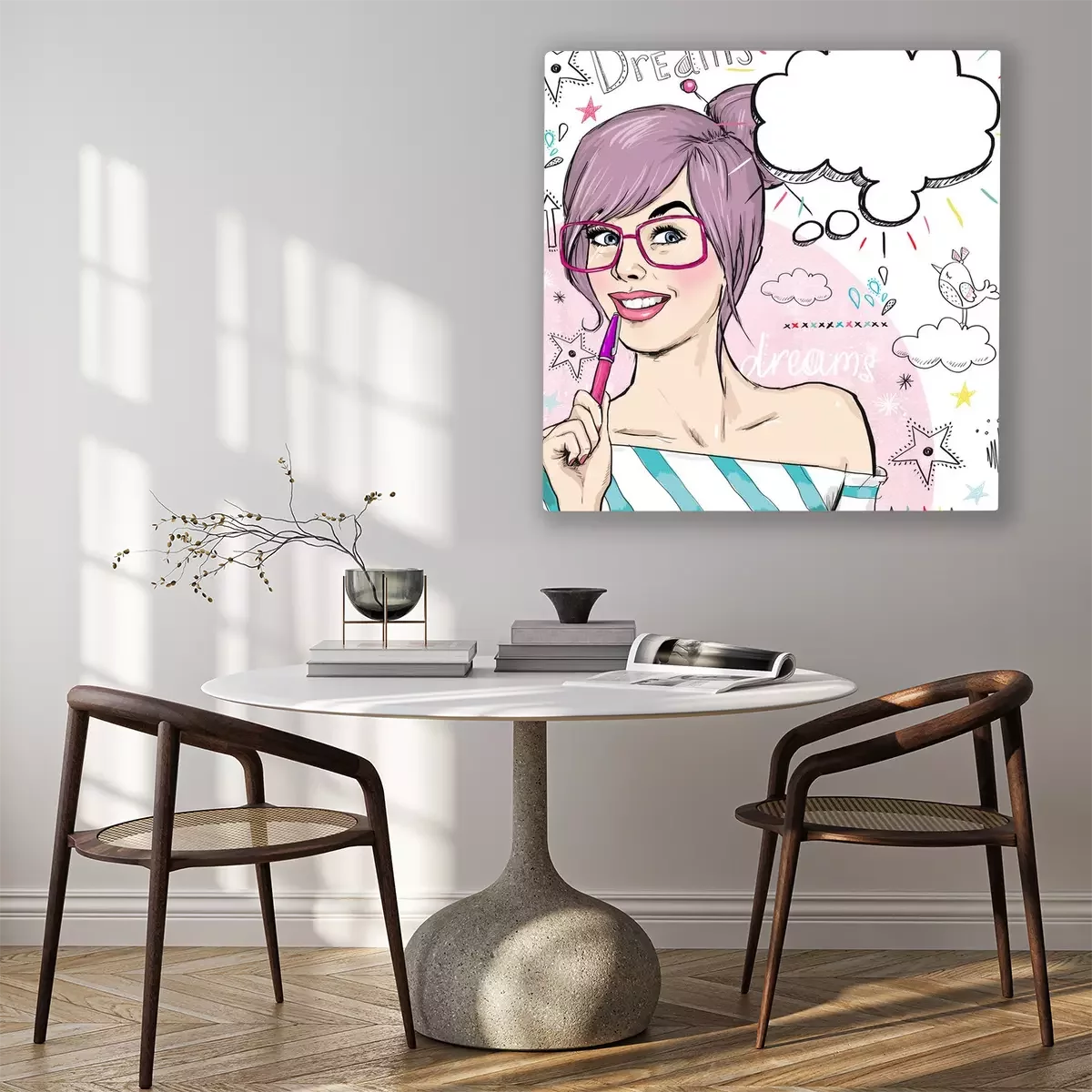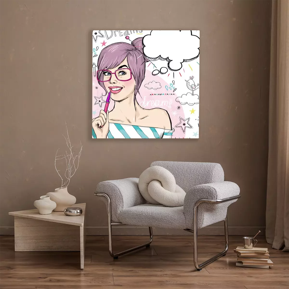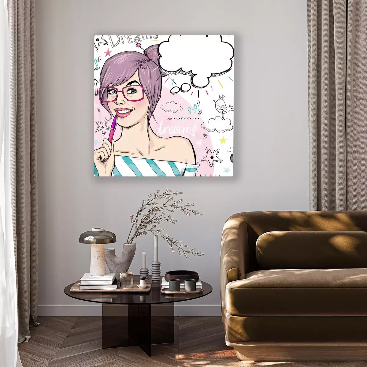 Bild Fashion Mädchen mit Stift in der Hand mit Sprechblase