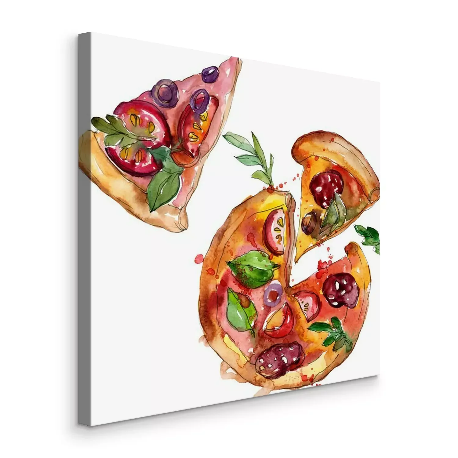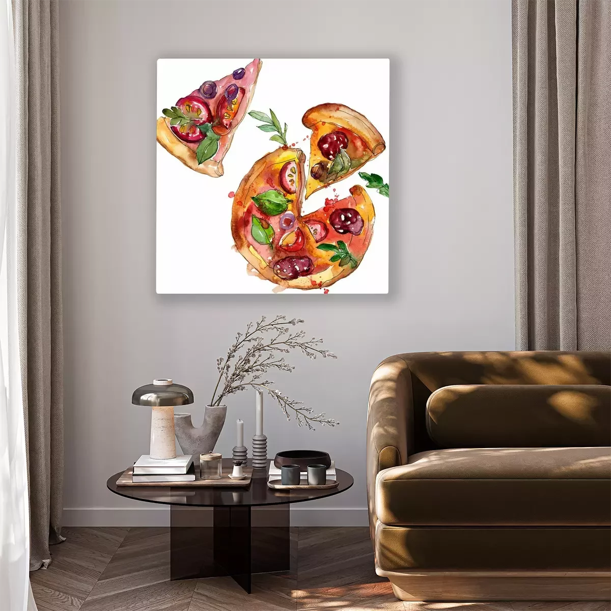 Bild Fast food itallian pizza in a watercolor style set. Aquarelle food illustration for background. Isolated pizza element.
