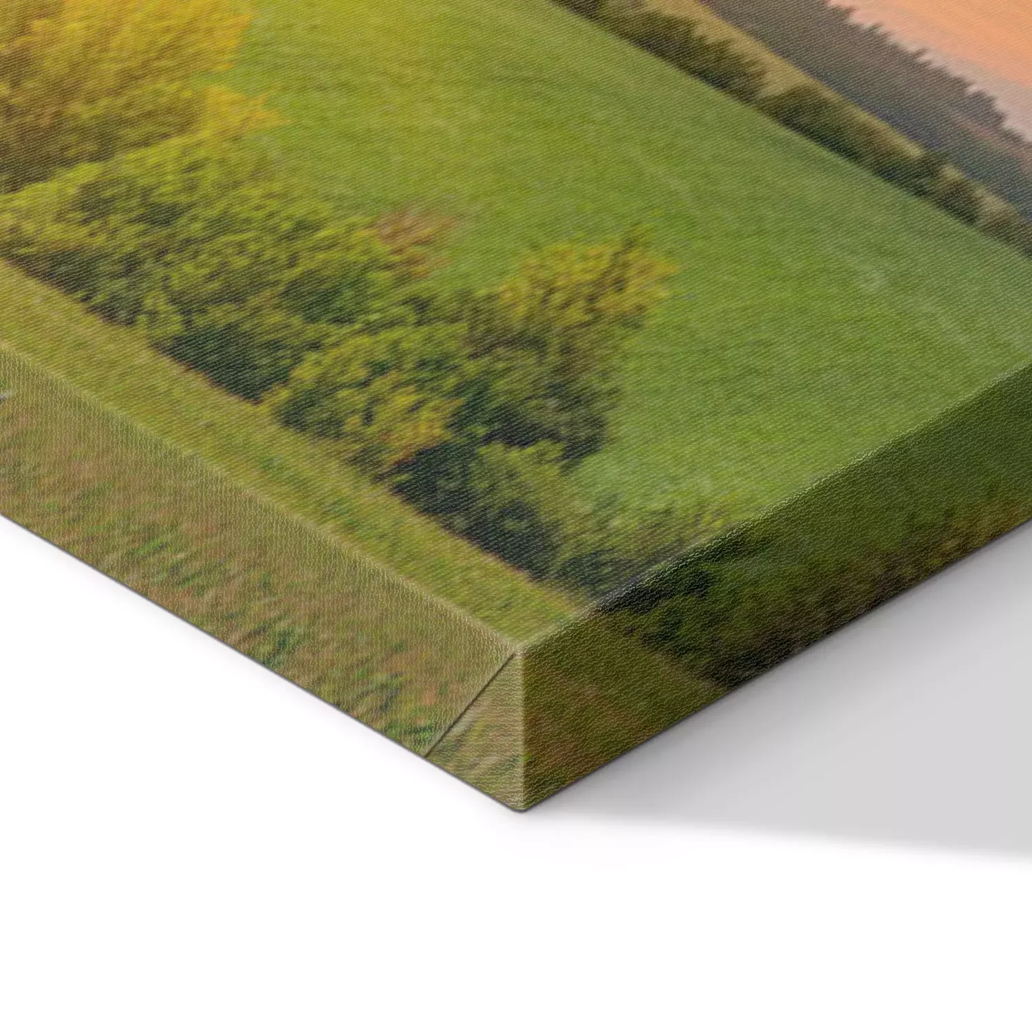 Das Motiv wird auf eine qualitativ hochwertige Leinwand gedruckt, die auf einen Blendrahmen gezogen wird. Da der Aufdruck die Seitenkanten bedeckt, muss das Bild nicht zusätzlich eingerahmt werden. Wir empfehlen außerdem Kompositionen aus mehreren Bildern, die ein harmonisches Ganzes bilden.
