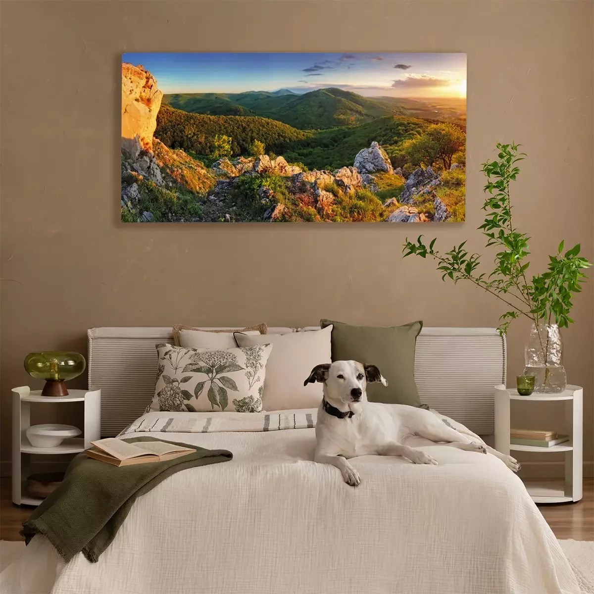 Das Motiv wird auf eine qualitativ hochwertige Leinwand gedruckt, die auf einen Blendrahmen gezogen wird. Da der Aufdruck die Seitenkanten bedeckt, muss das Bild nicht zusätzlich eingerahmt werden. Wir empfehlen außerdem Kompositionen aus mehreren Bildern, die ein harmonisches Ganzes bilden.