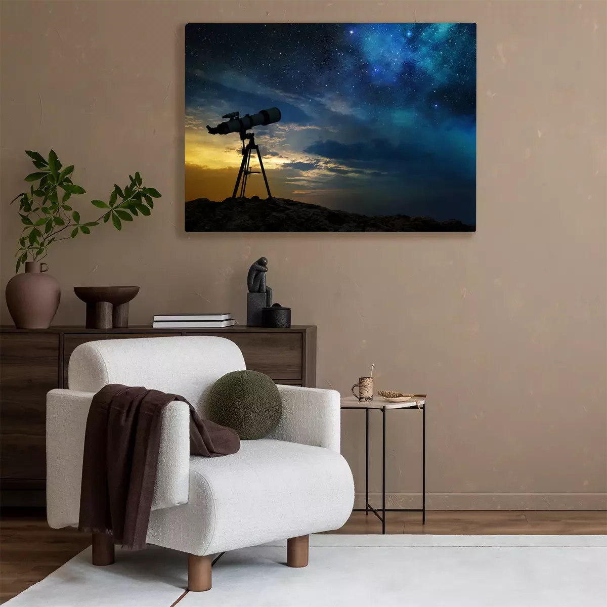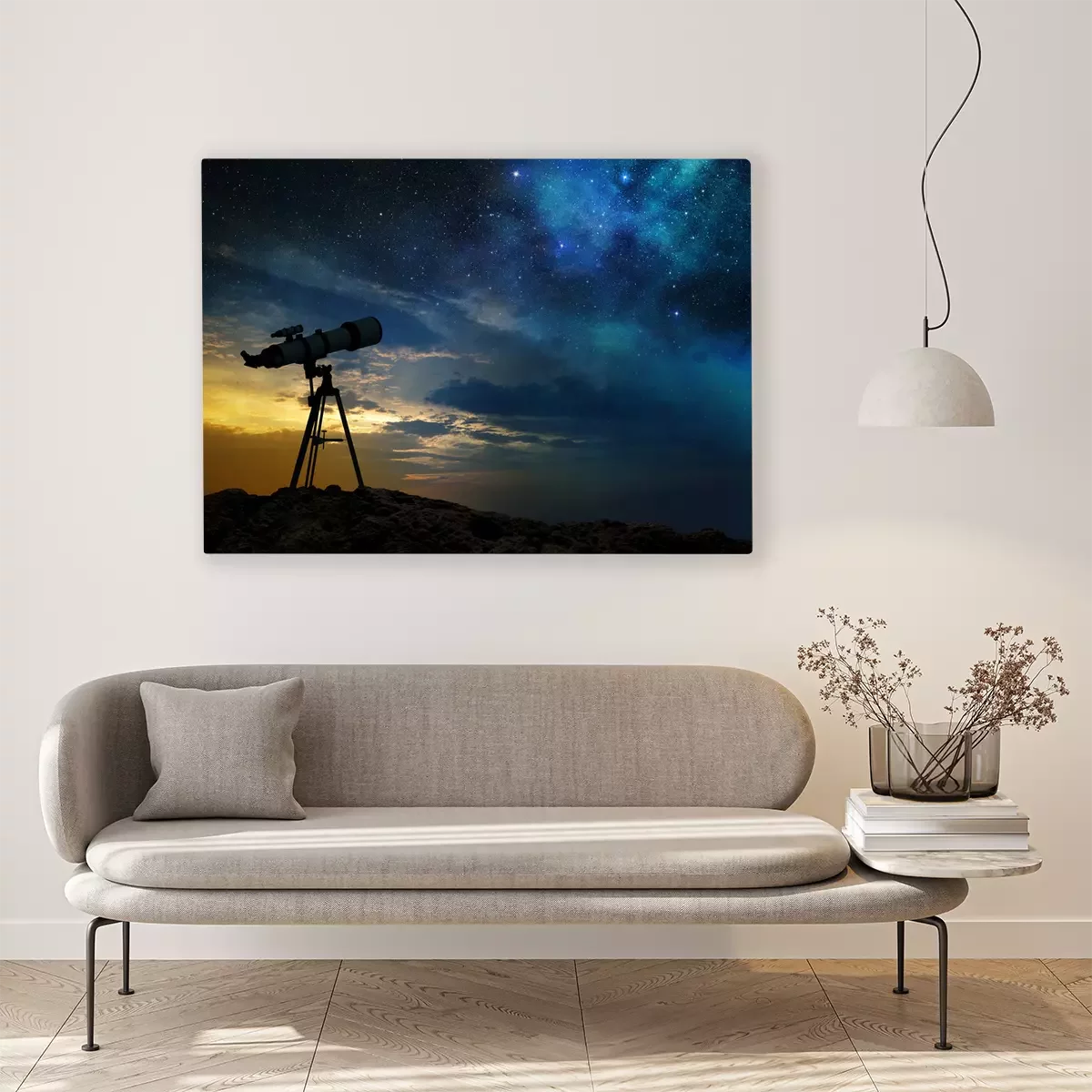 Bild: Fernrohr mit den Sternen im Hintergrund