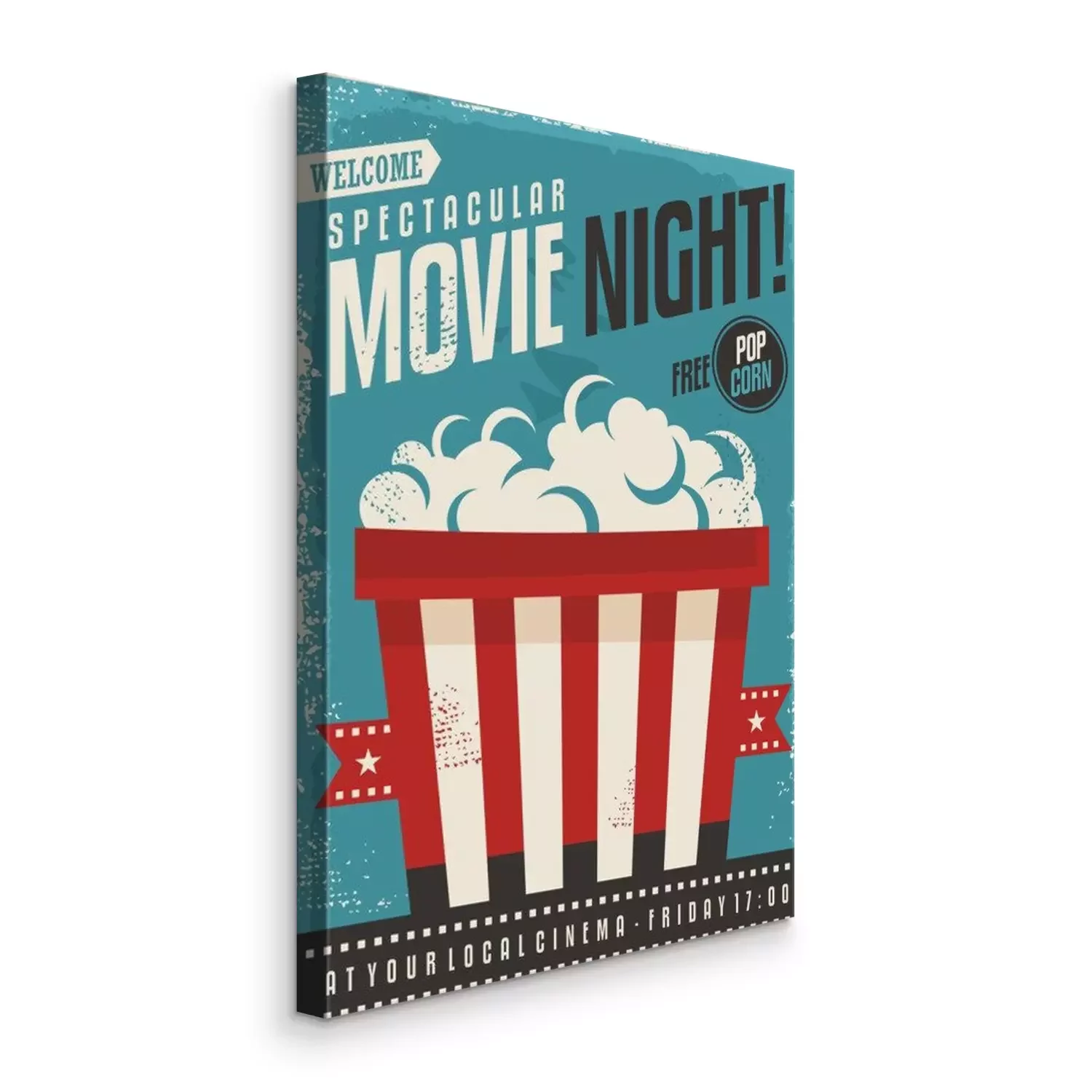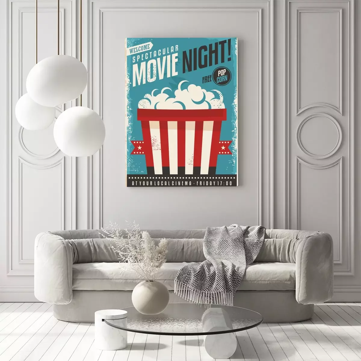 Bild Filmkino Nacht Retro Plakatentwurf. Popcorn Grafik mit Filmstreifen Unterhaltung Broschüre Vorlage.
