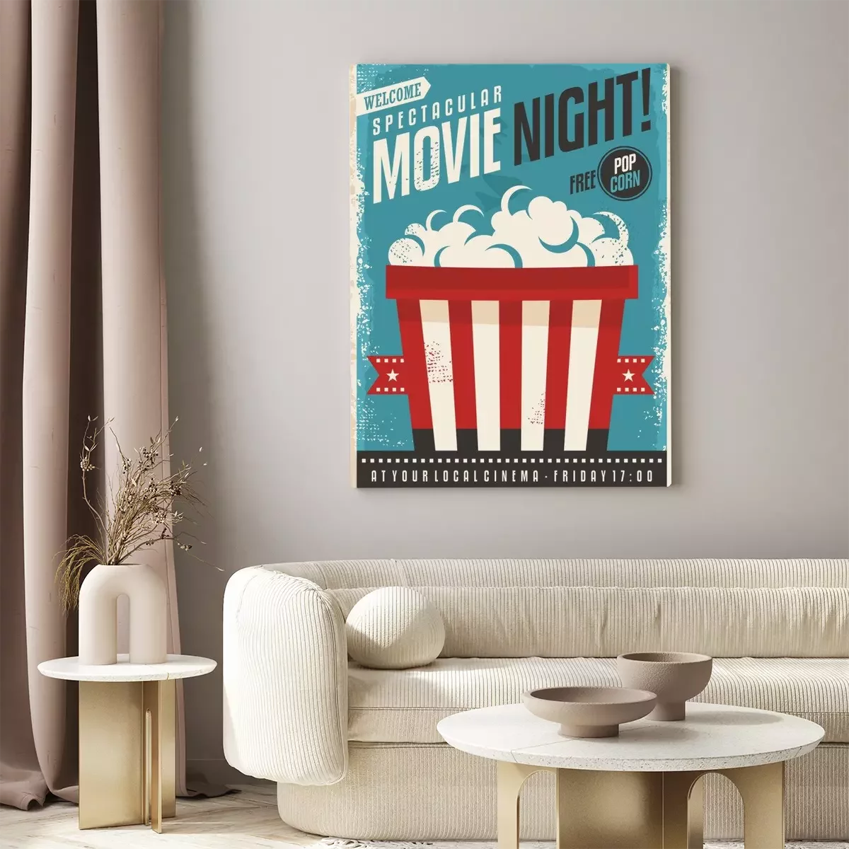 Bild: Filmkino Nacht Retro Plakatentwurf. Popcorn Grafik mit Filmstreifen Unterhaltung Broschüre Vorlage.