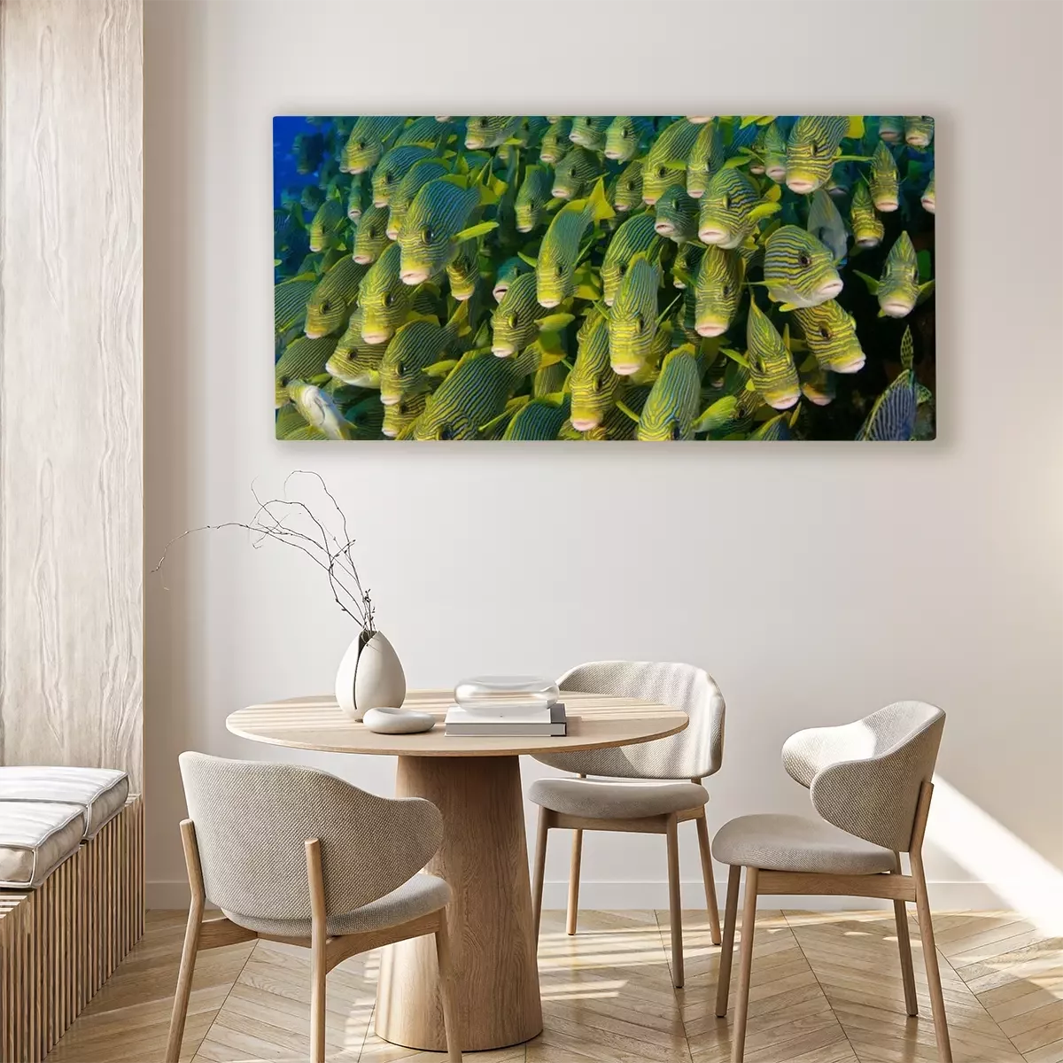 Das Motiv wird auf eine qualitativ hochwertige Leinwand gedruckt, die auf einen Blendrahmen gezogen wird. Da der Aufdruck die Seitenkanten bedeckt, muss das Bild nicht zusätzlich eingerahmt werden. Wir empfehlen außerdem Kompositionen aus mehreren Bildern, die ein harmonisches Ganzes bilden.