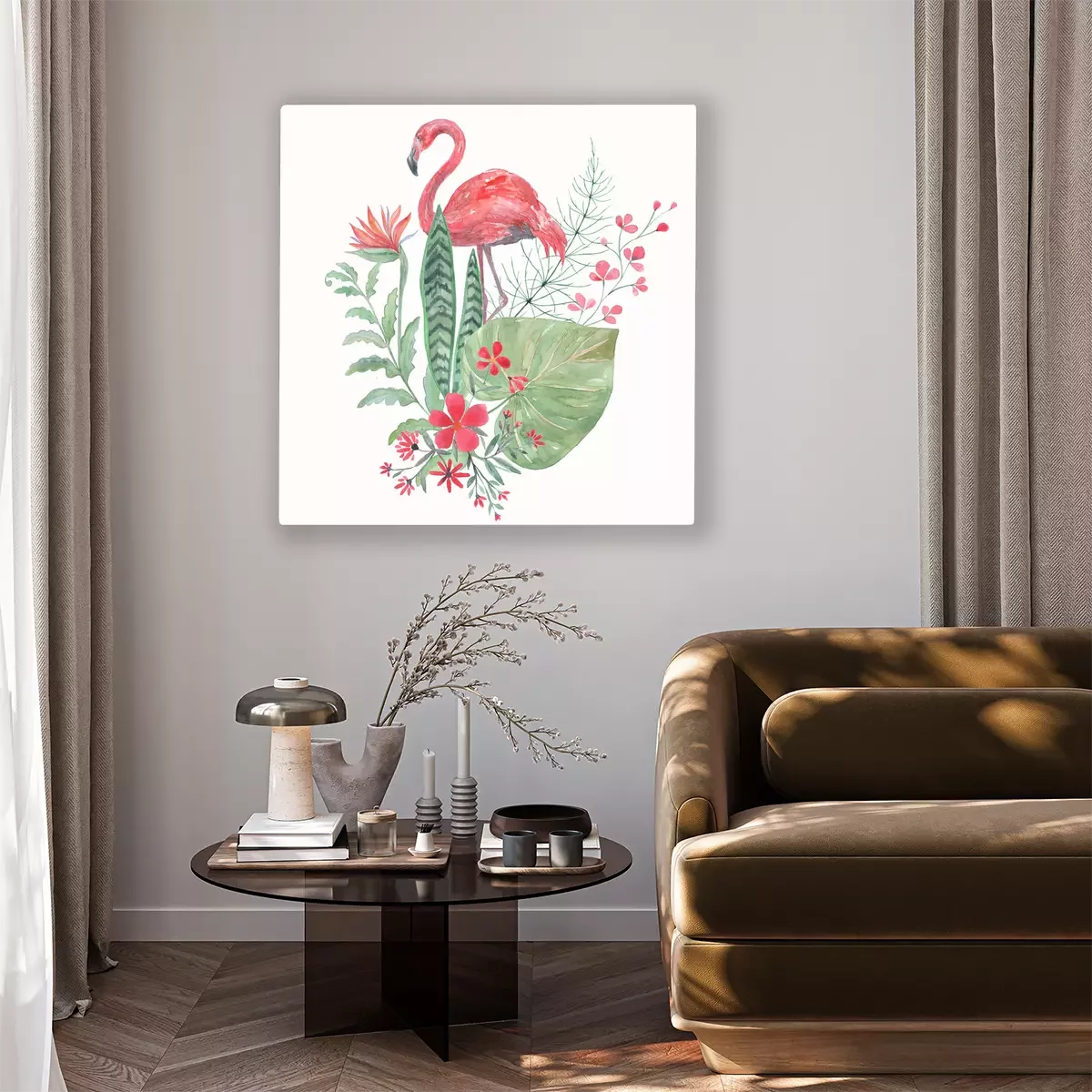 Bild Flamingo mit exotischen Blättern