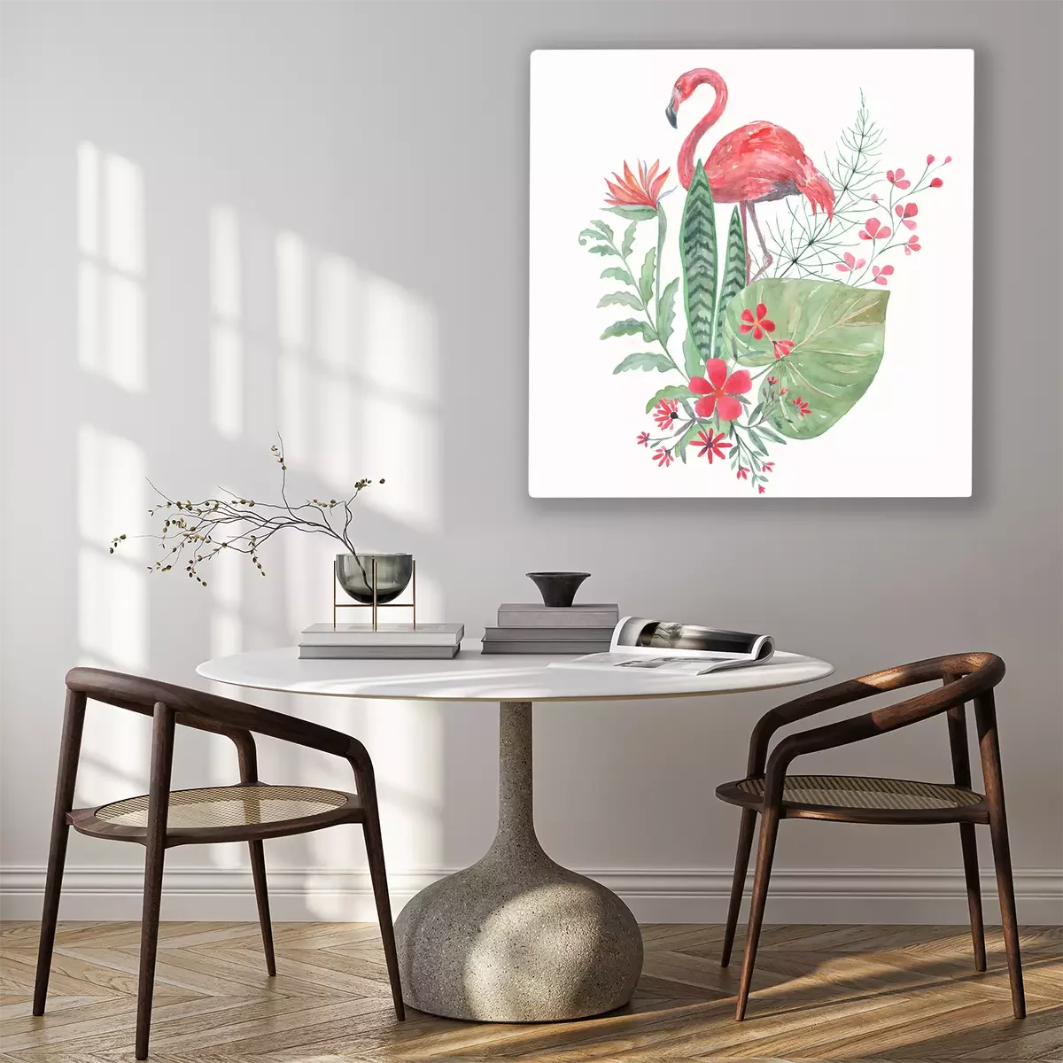 Bild: Flamingo mit exotischen Blättern