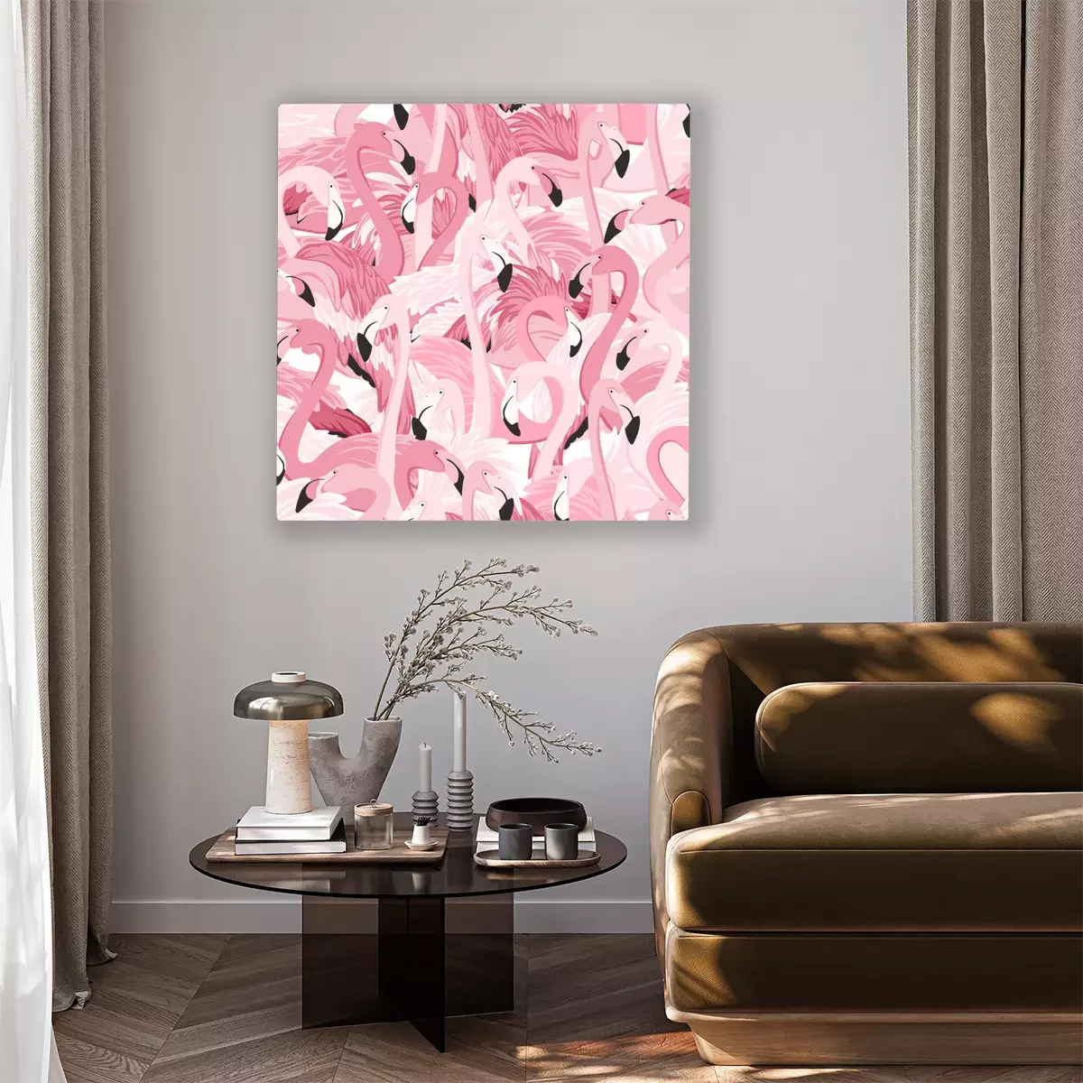 Motiv mit inmitten von Blättern versteckten Flamingos