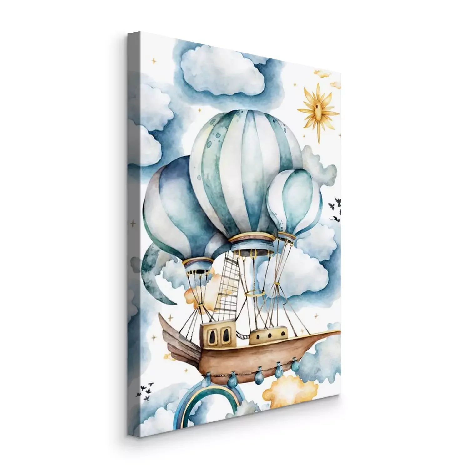 Bild: Fliegendes Schiff auf Ballons inmitten von flauschigen Wolken
