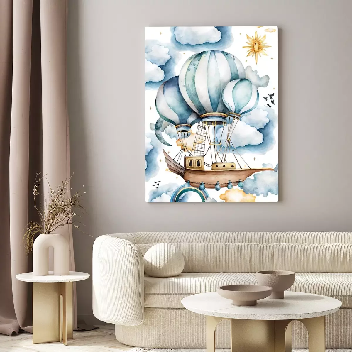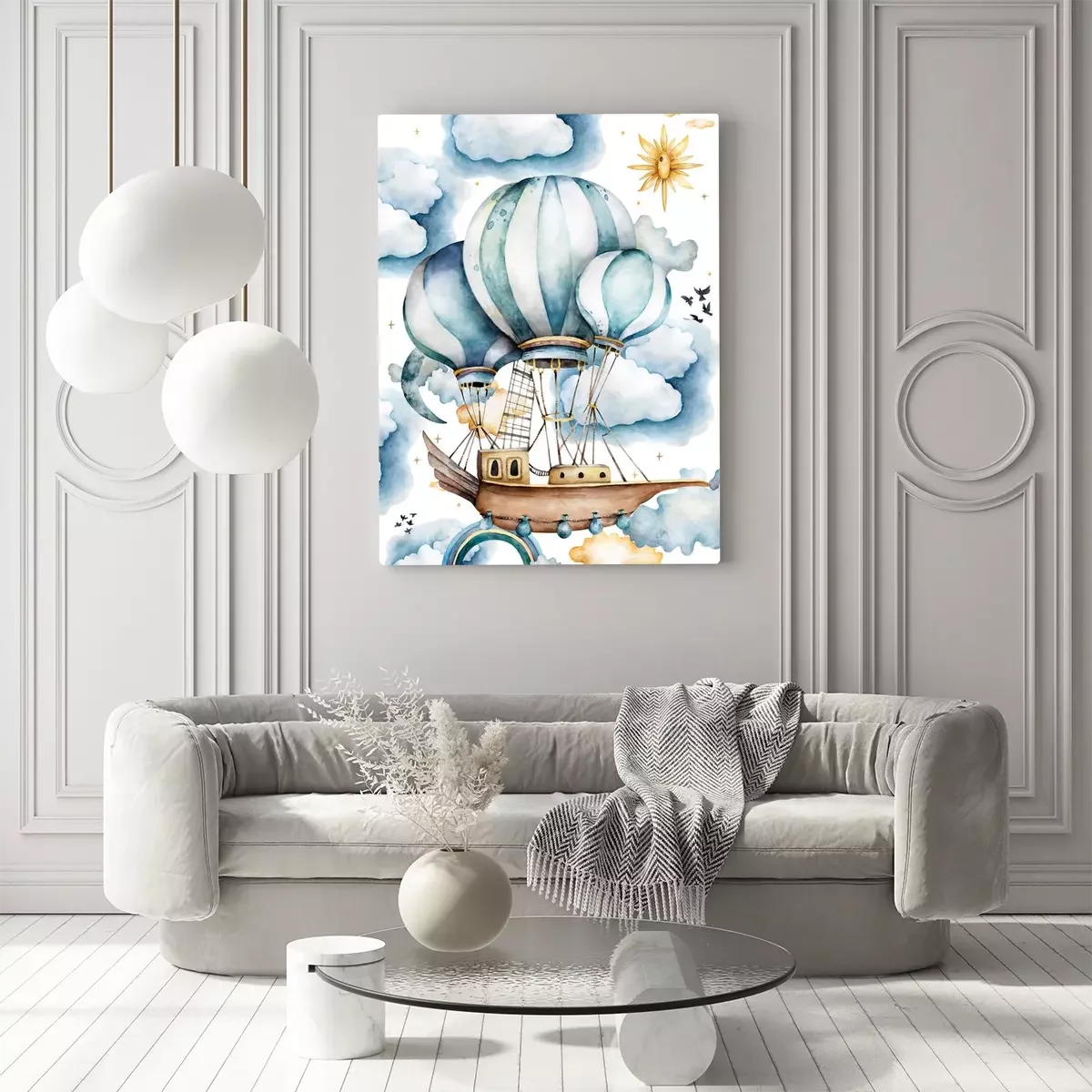 Bild Fliegendes Schiff auf Ballons inmitten von flauschigen Wolken