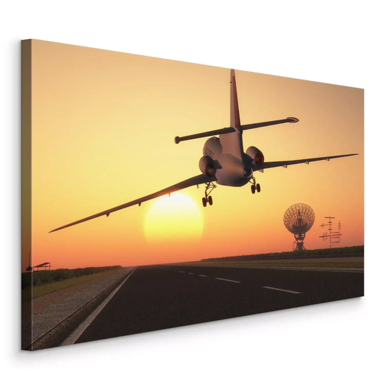 Bild Flugzeug hebt bei Sonnenuntergang ab