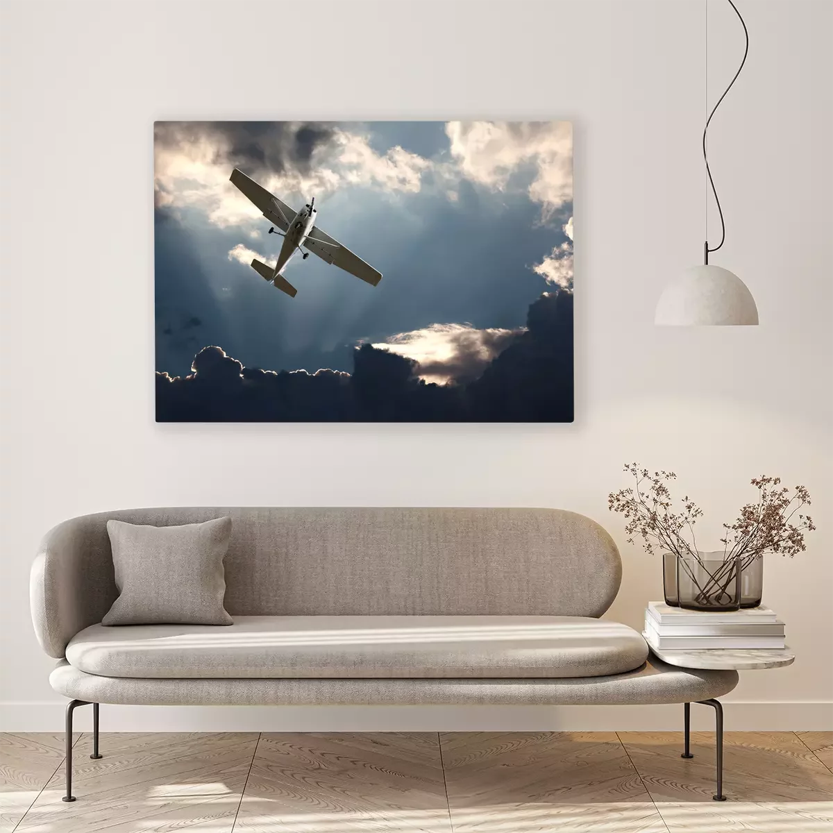Bild Flugzeug mit stürmischem Himmel im Hintergrund