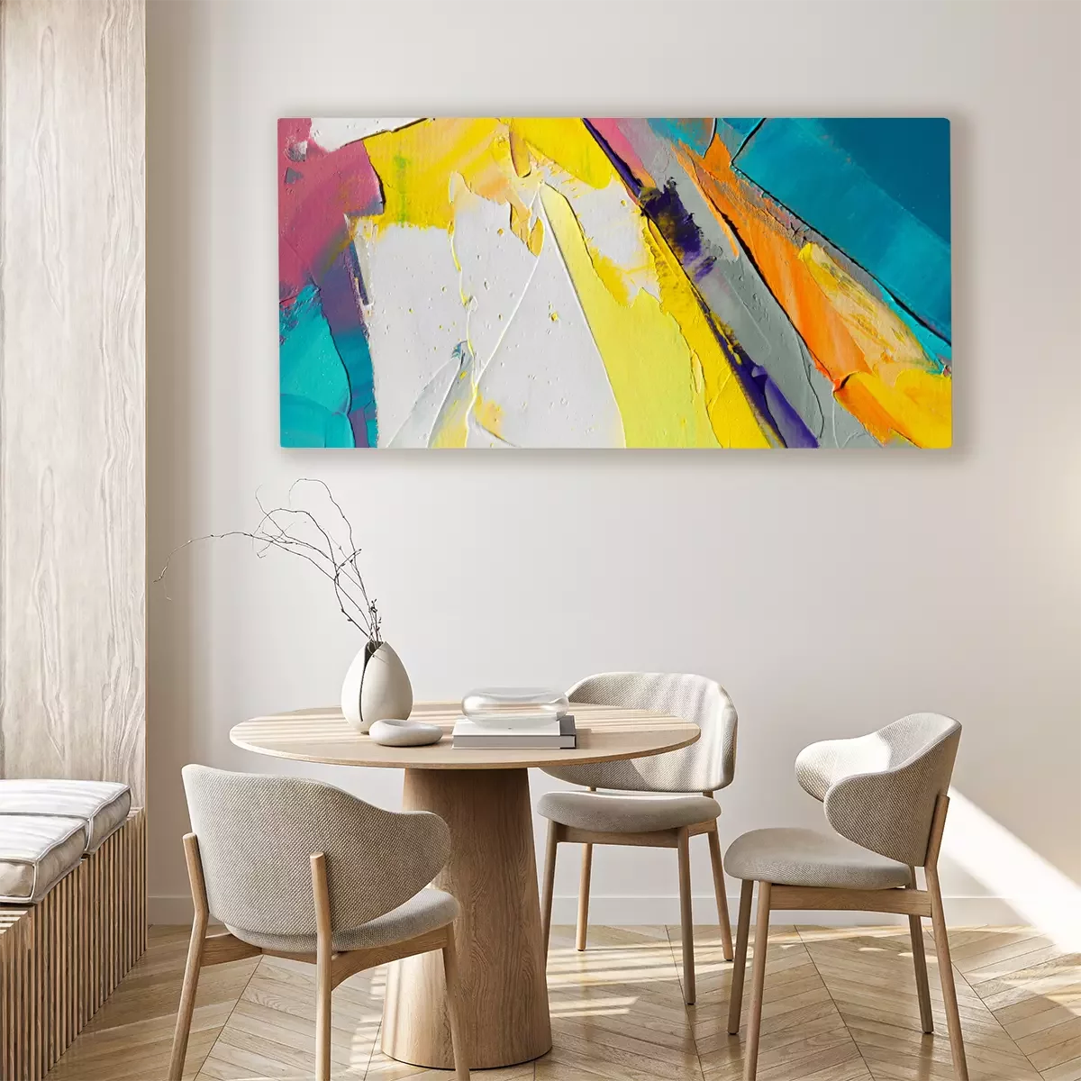 Bild: Fragment. Multicolored texture painting. Abstract art background. oil on canvas. Rough brushstrokes of paint. Closeup of a painting by oil and palette knife. Highly-textured, high quality details.