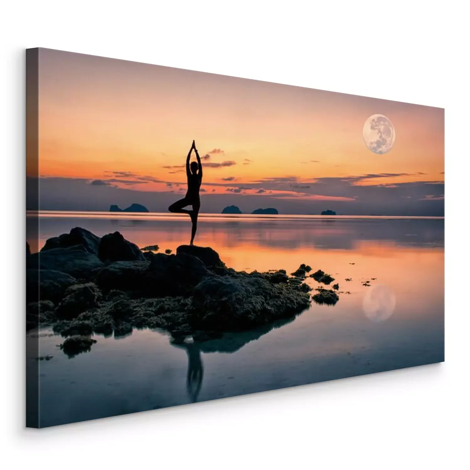 Bild Frau auf Felsen am Meer in Yoga-Stellung