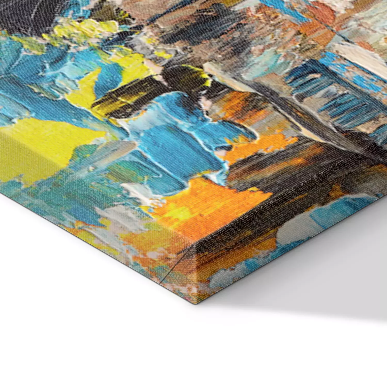 Das Motiv wird auf eine qualitativ hochwertige Leinwand gedruckt, die auf einen Blendrahmen gezogen wird. Da der Aufdruck die Seitenkanten bedeckt, muss das Bild nicht zusätzlich eingerahmt werden. Wir empfehlen außerdem Kompositionen aus mehreren Bildern, die ein harmonisches Ganzes bilden.