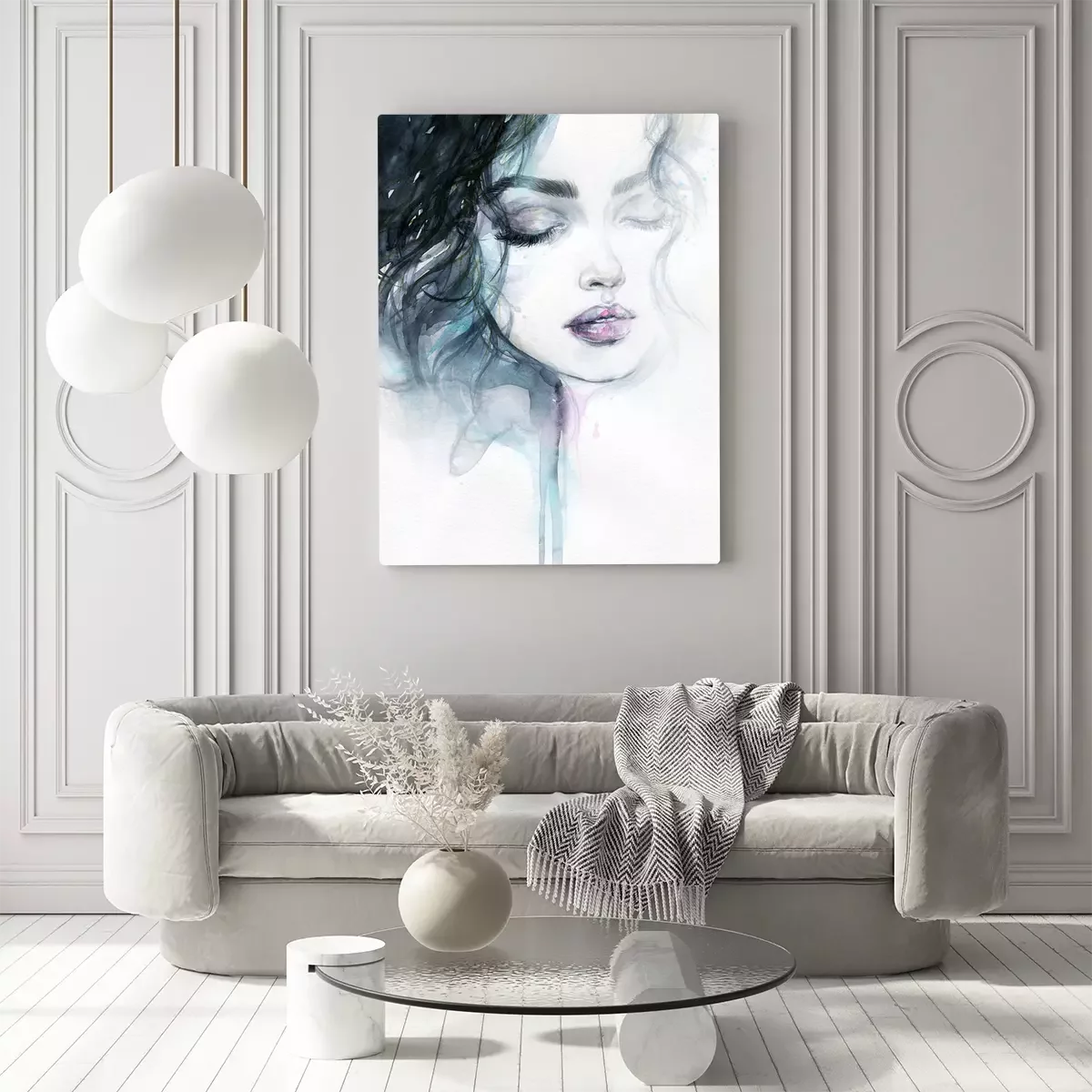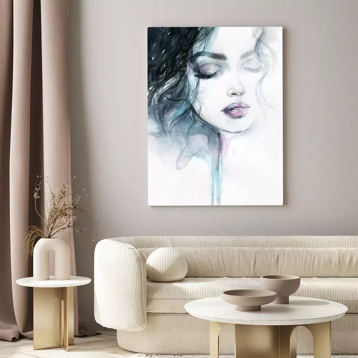 Abstraktes Gesicht einer Frau mit Aquarellfarben gemalt