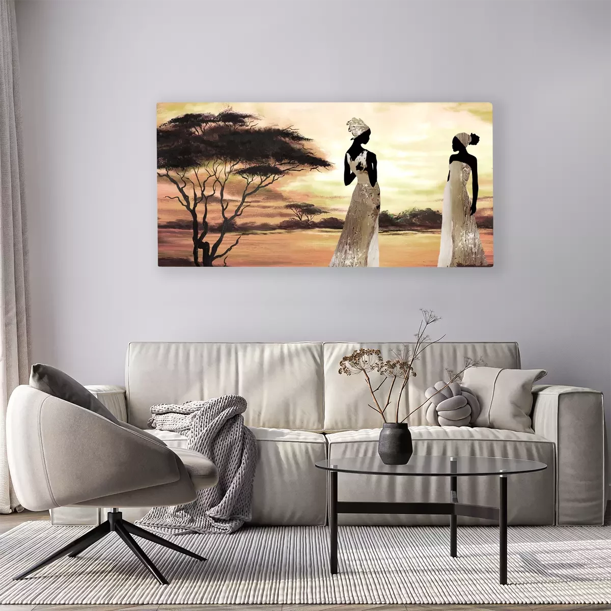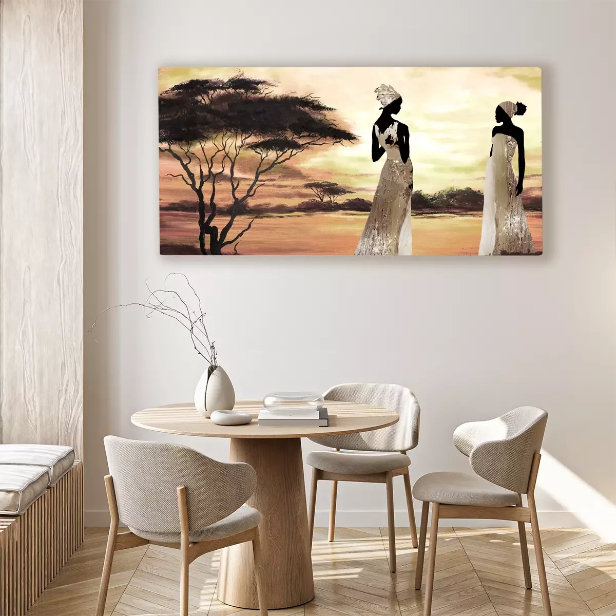 Frauen in farbenfroher kleidung in der savanne
