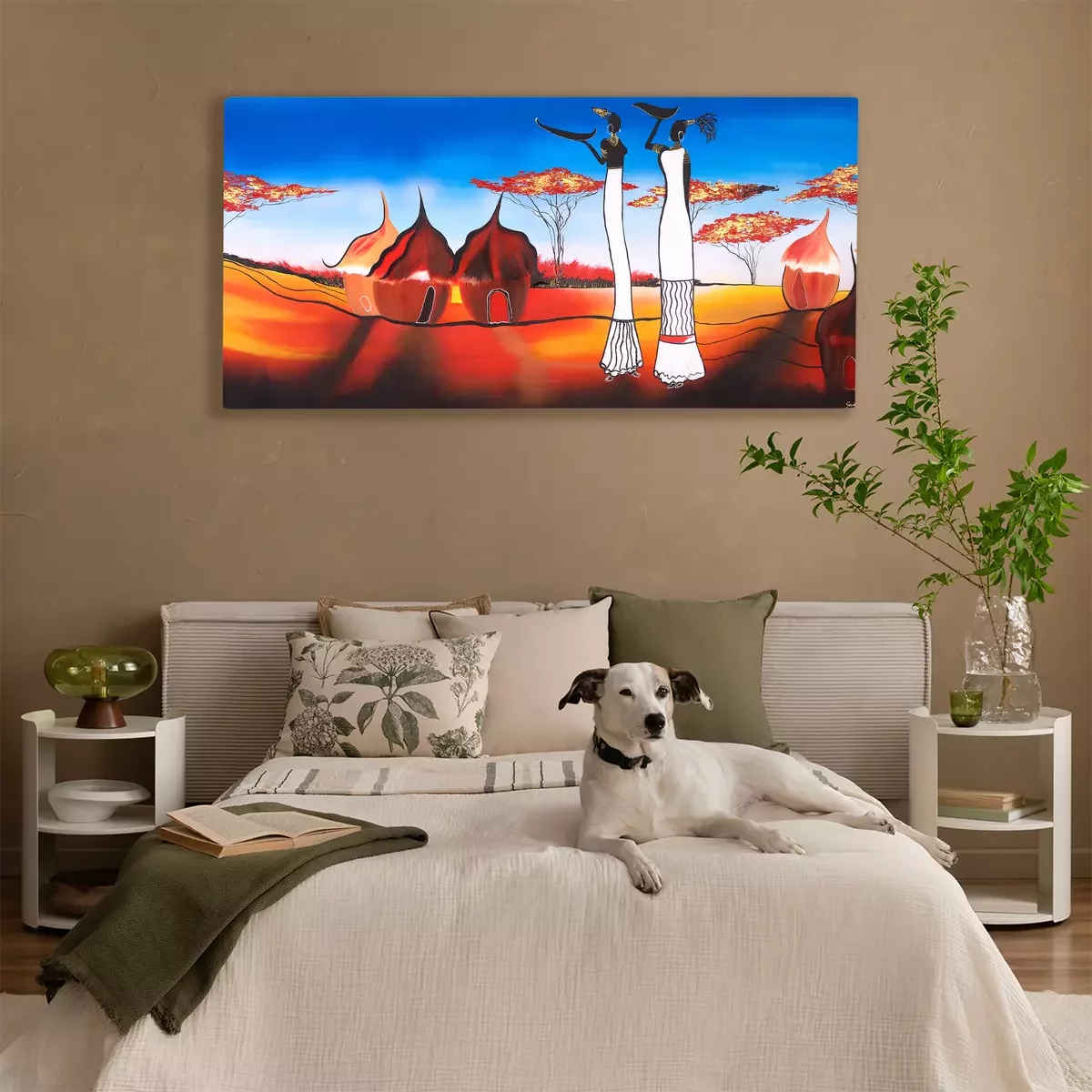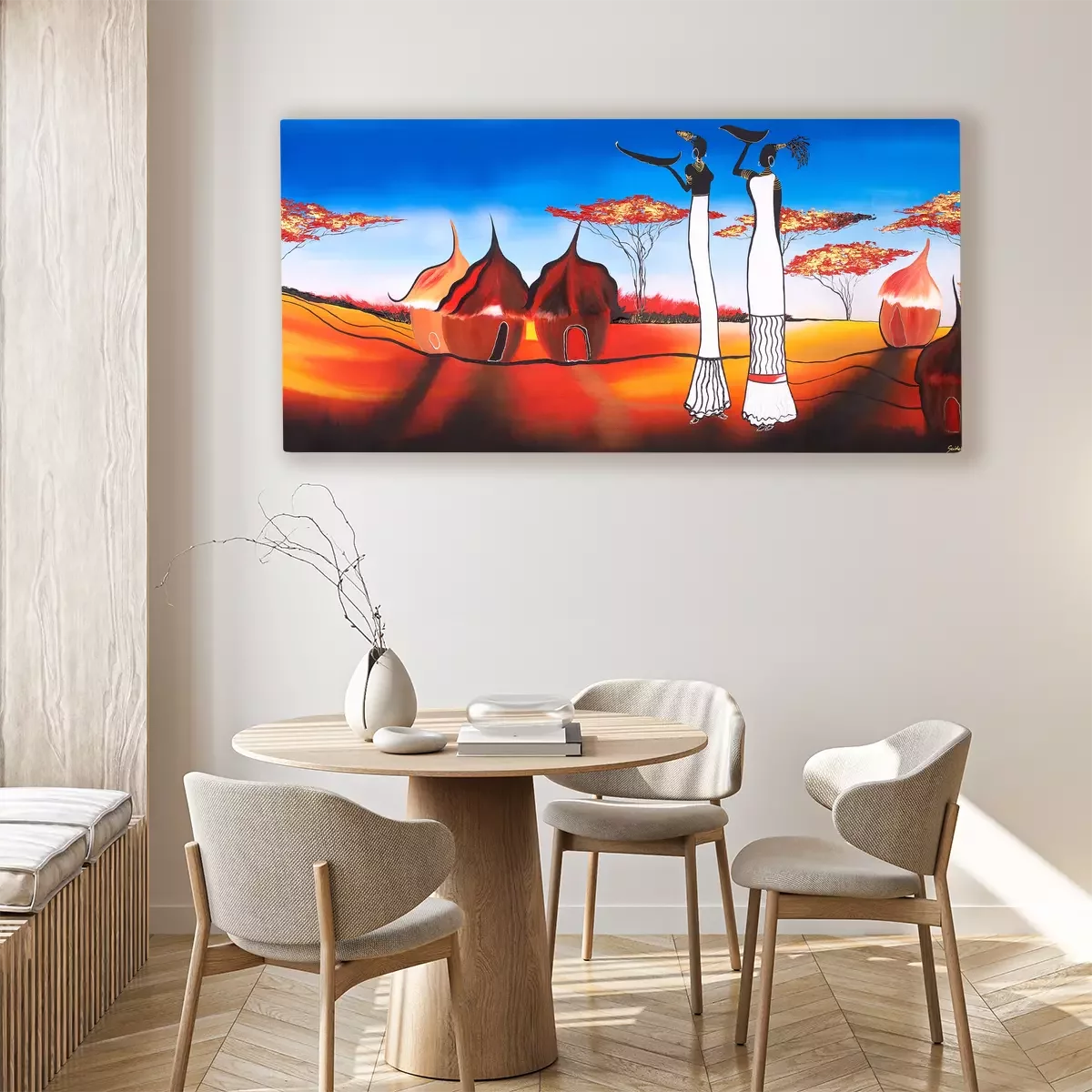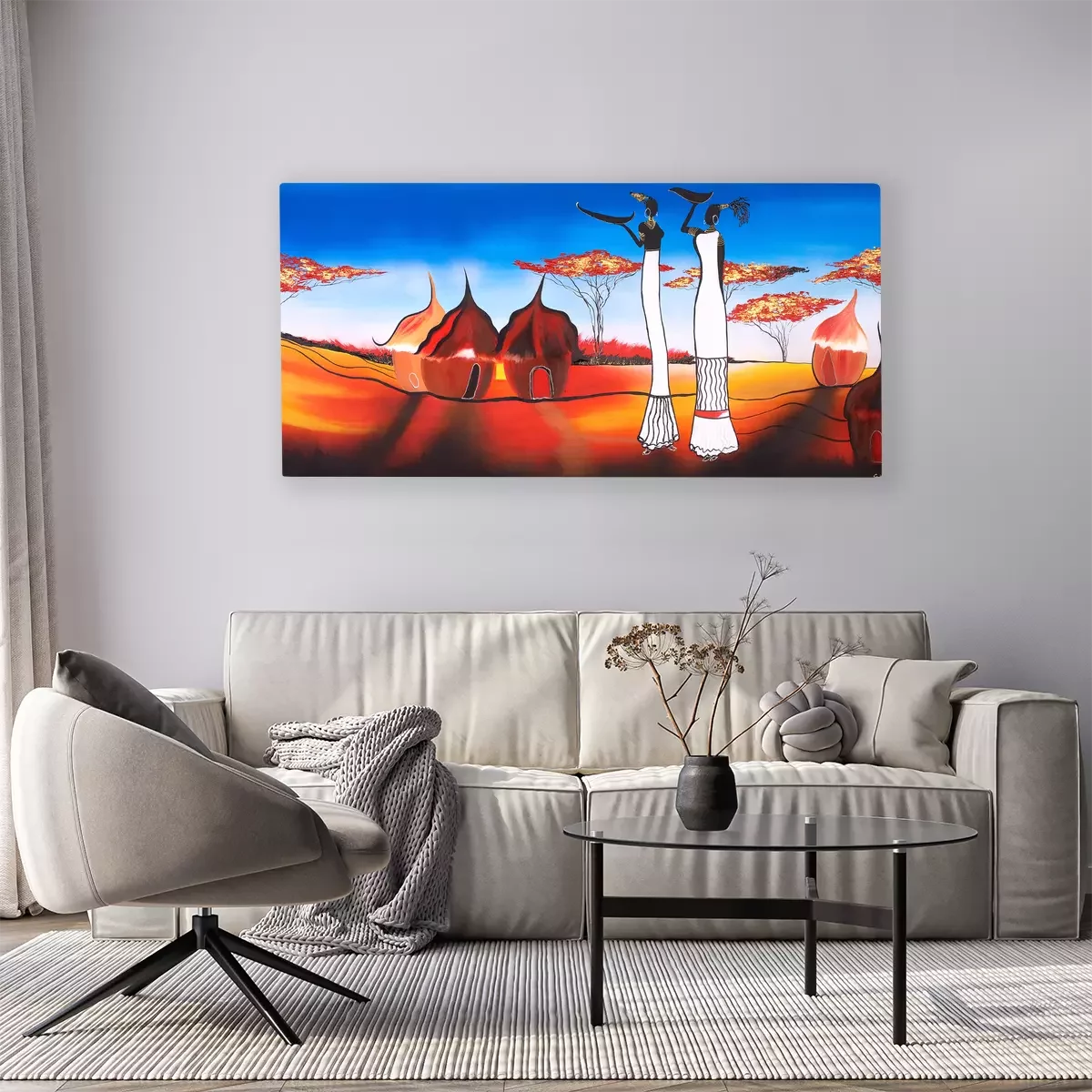 Frauen in traditionellen hütten in einer afrikanischen landschaft