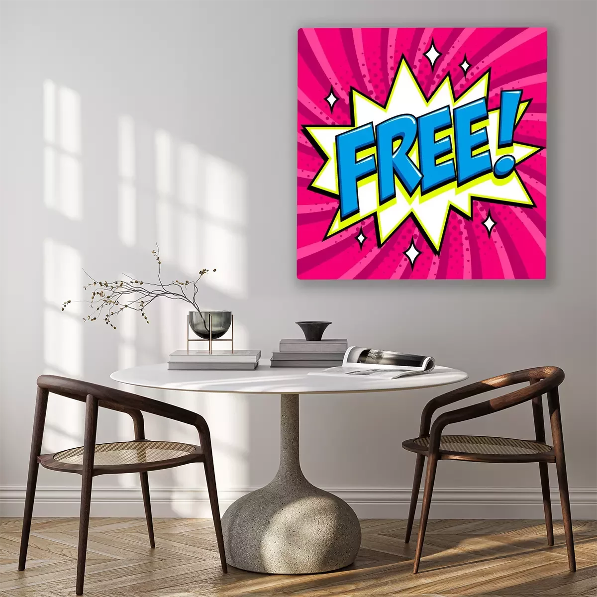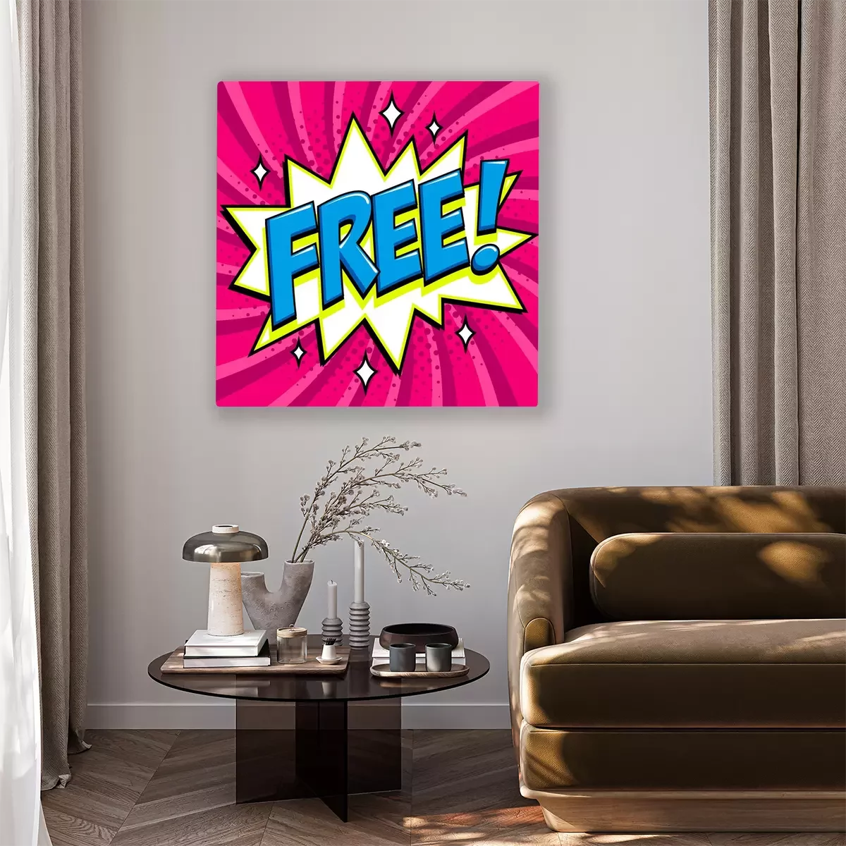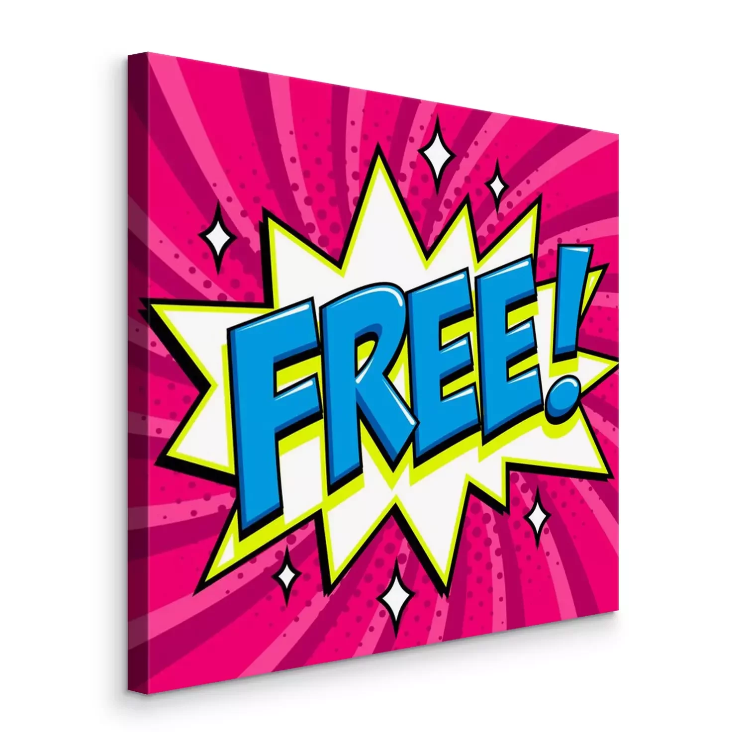 Bild Free - Comic book style word on a purple background. Free banner in pop art comic style. Color summer banner in pop art style Ideal for web. Decorative background with bomb explosive.