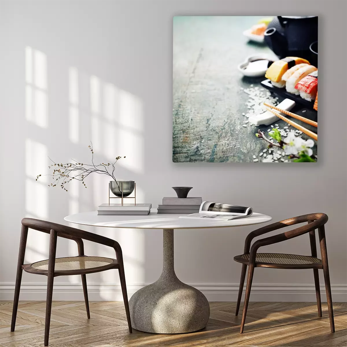 Sushi und Essstäbchen