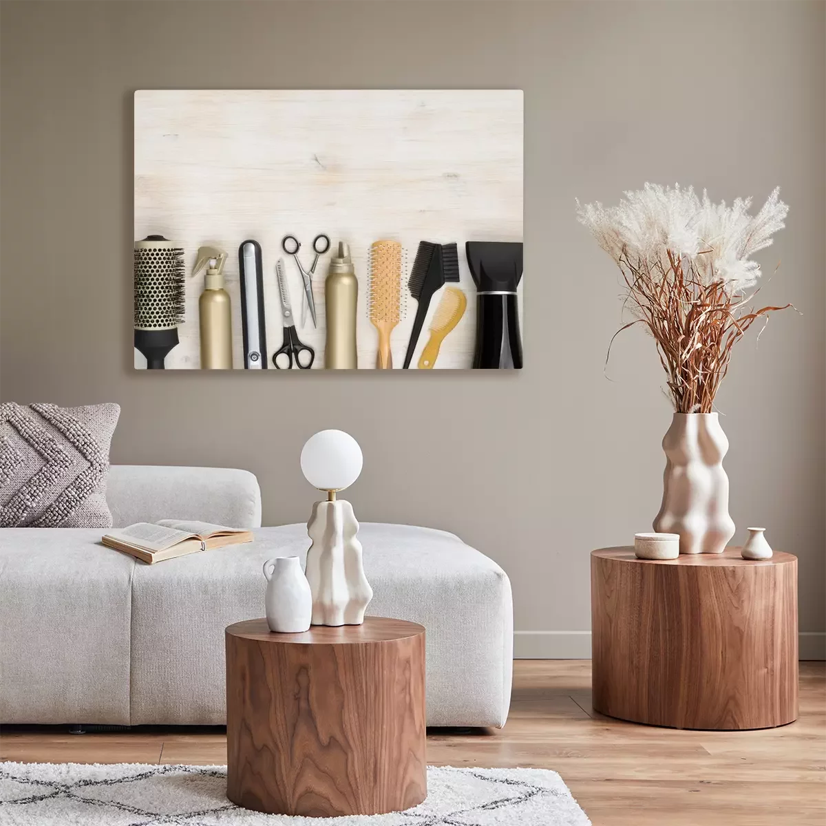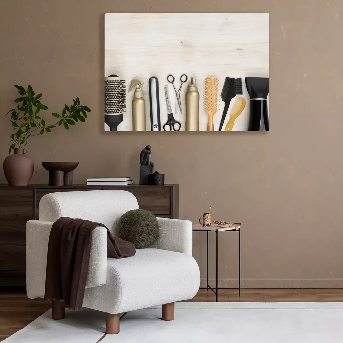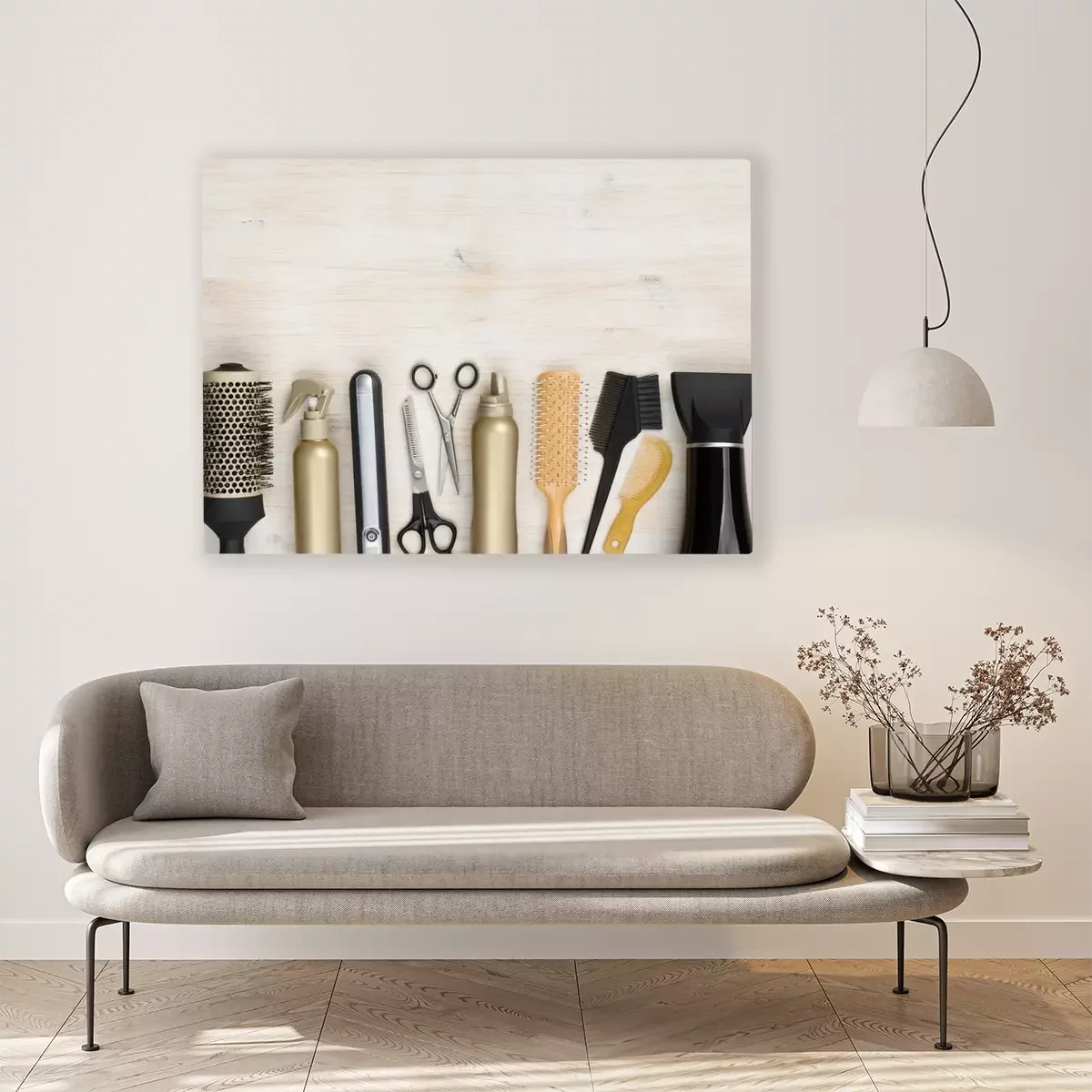Elegante Friseurwerkzeuge auf schwarzem Hintergrund
