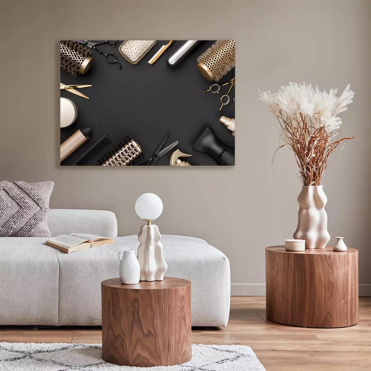 Bild: Friseurzubehör auf dunklem Hintergrund