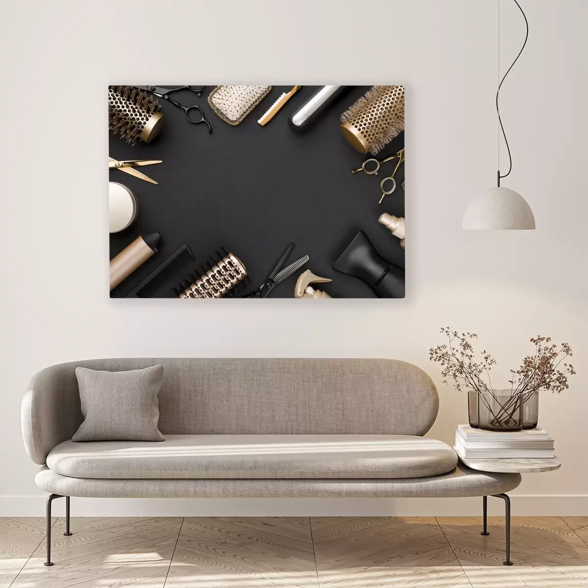 Elegante Friseurwerkzeuge auf schwarzem Hintergrund