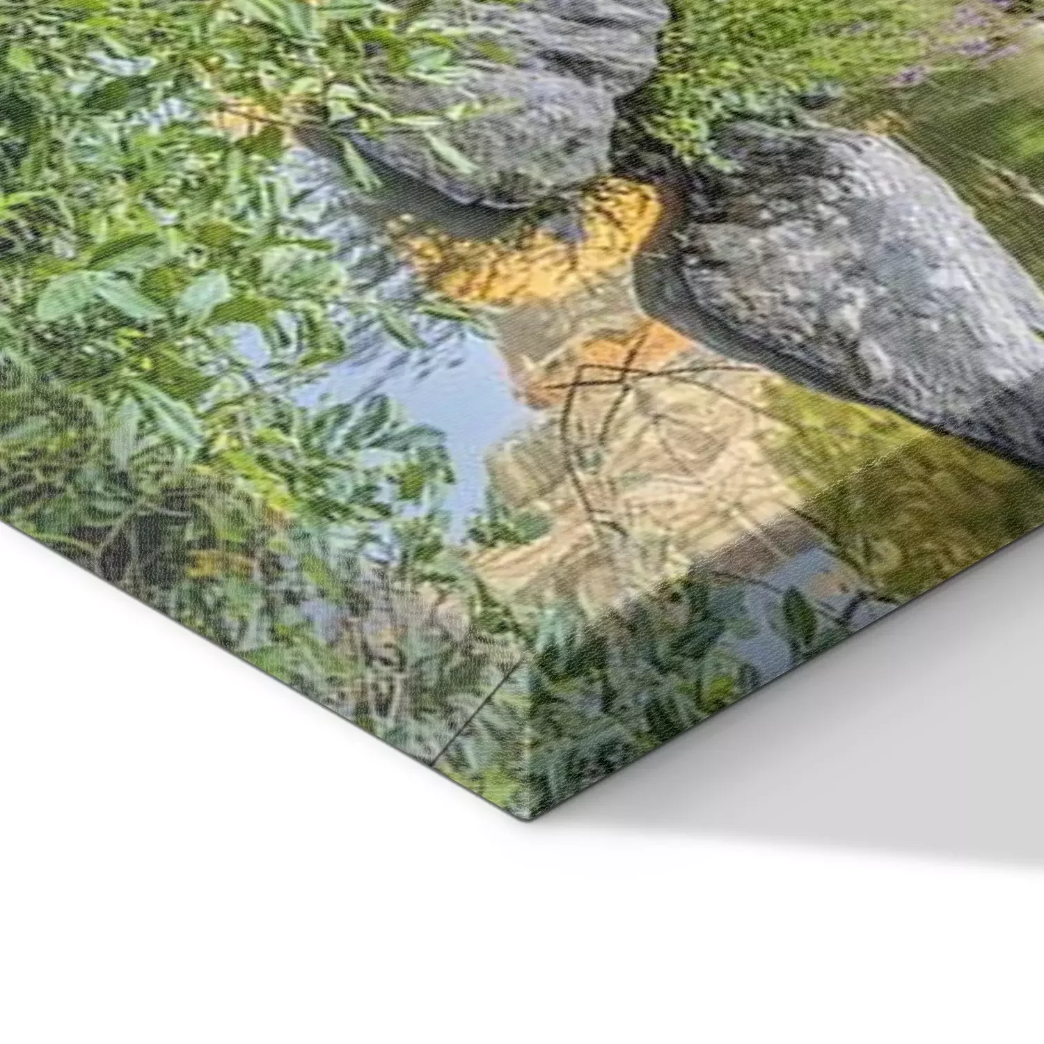 Das Motiv wird auf eine qualitativ hochwertige Leinwand gedruckt, die auf einen Blendrahmen gezogen wird. Da der Aufdruck die Seitenkanten bedeckt, muss das Bild nicht zusätzlich eingerahmt werden. Wir empfehlen außerdem Kompositionen aus mehreren Bildern, die ein harmonisches Ganzes bilden.