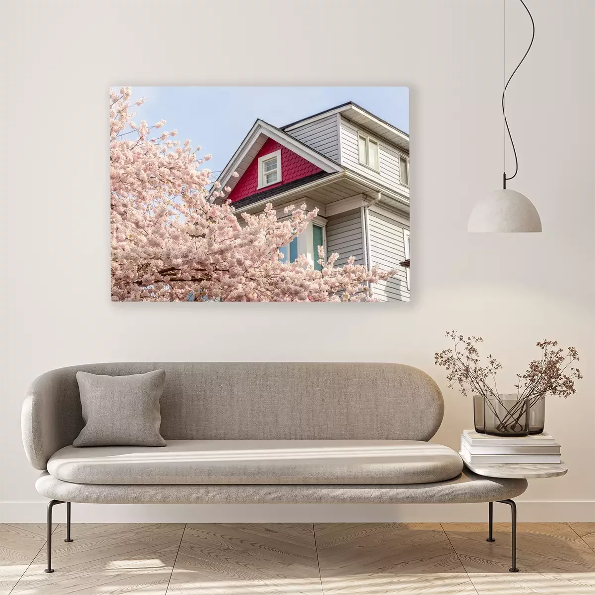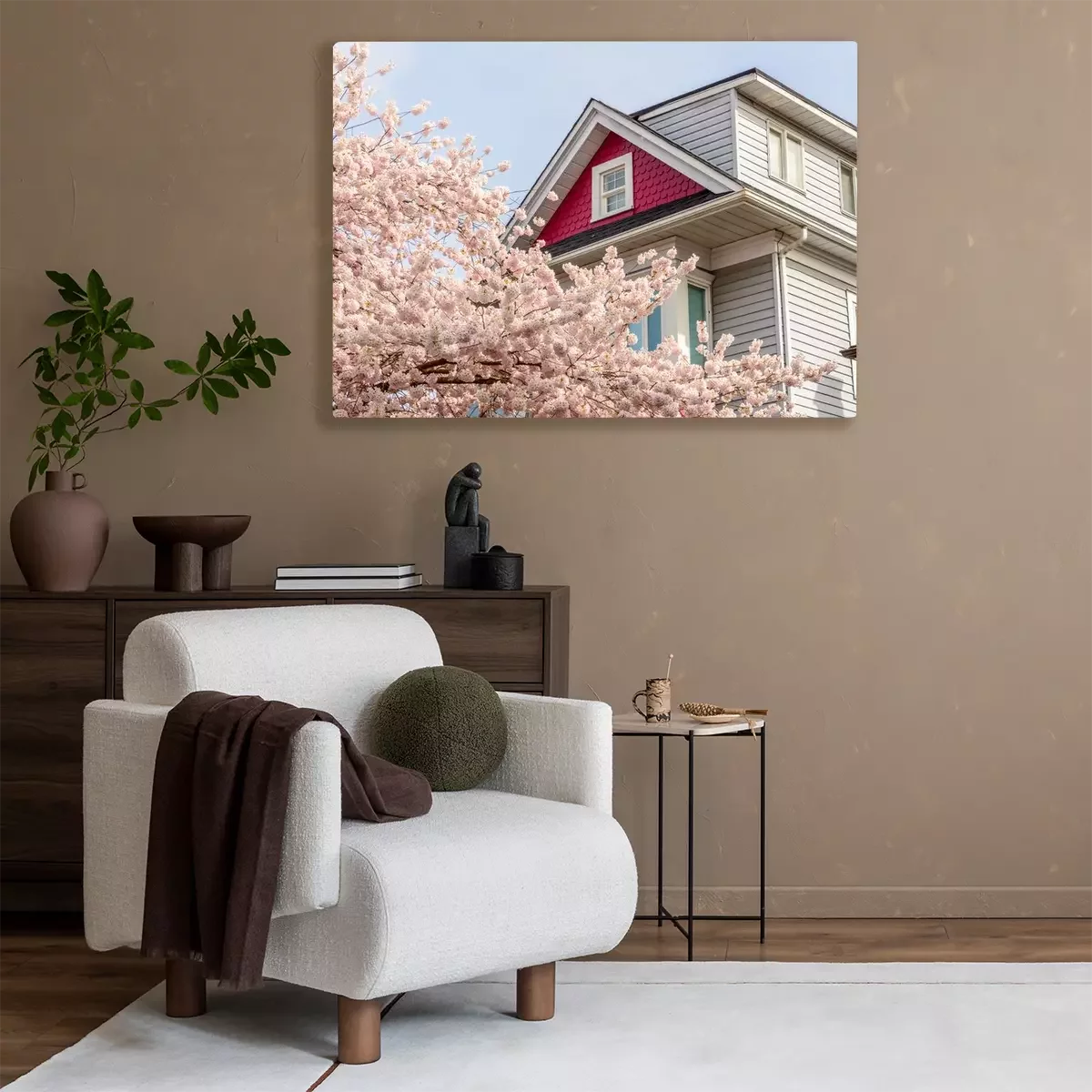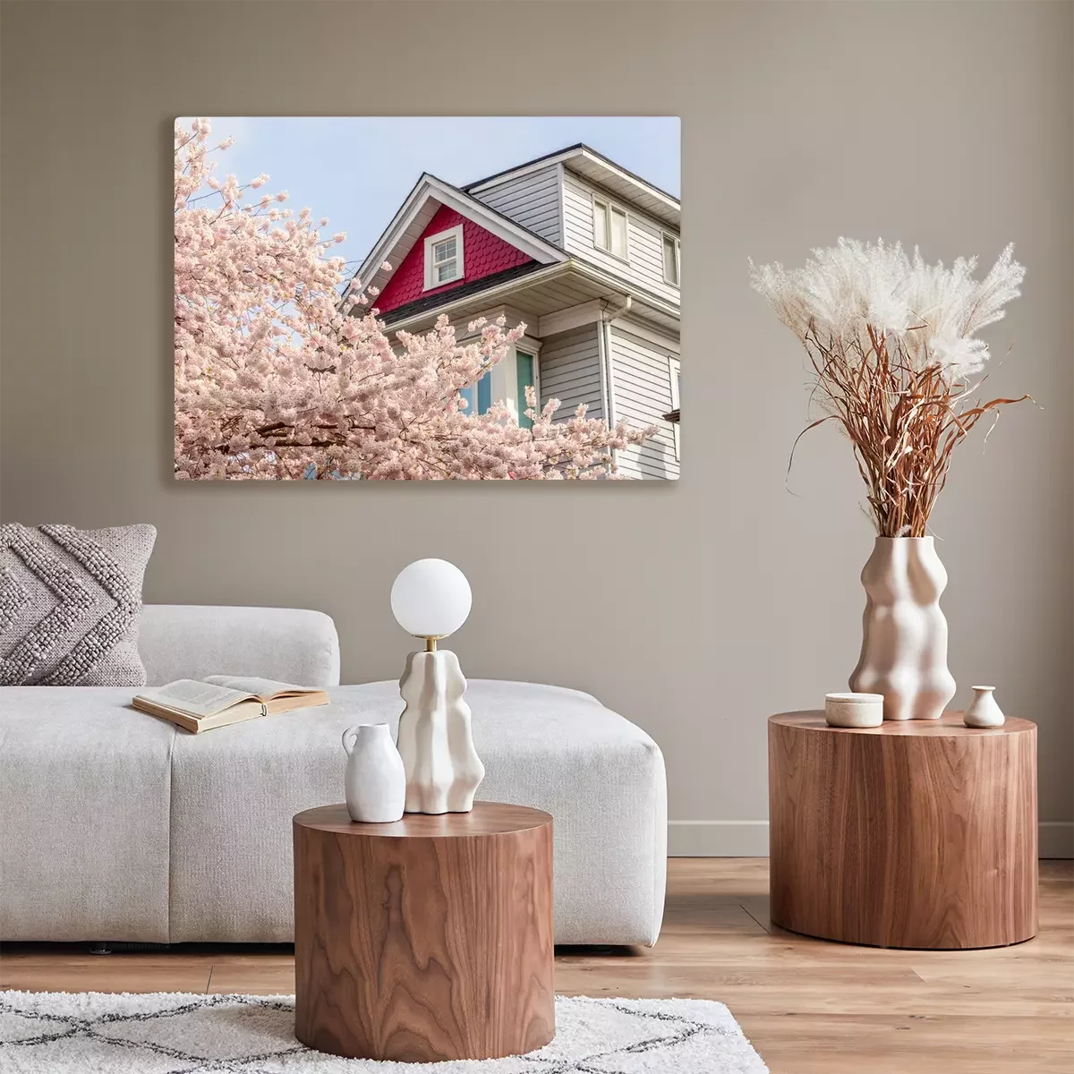 Bild Frühlingsbaum vor dem Hintergrund des Hauses