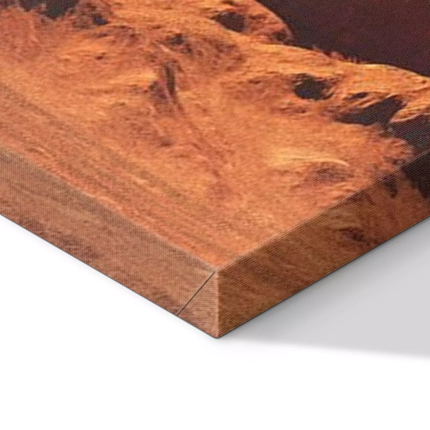 Das Motiv wird auf eine qualitativ hochwertige Leinwand gedruckt, die auf einen Blendrahmen gezogen wird. Da der Aufdruck die Seitenkanten bedeckt, muss das Bild nicht zusätzlich eingerahmt werden. Wir empfehlen außerdem Kompositionen aus mehreren Bildern, die ein harmonisches Ganzes bilden.