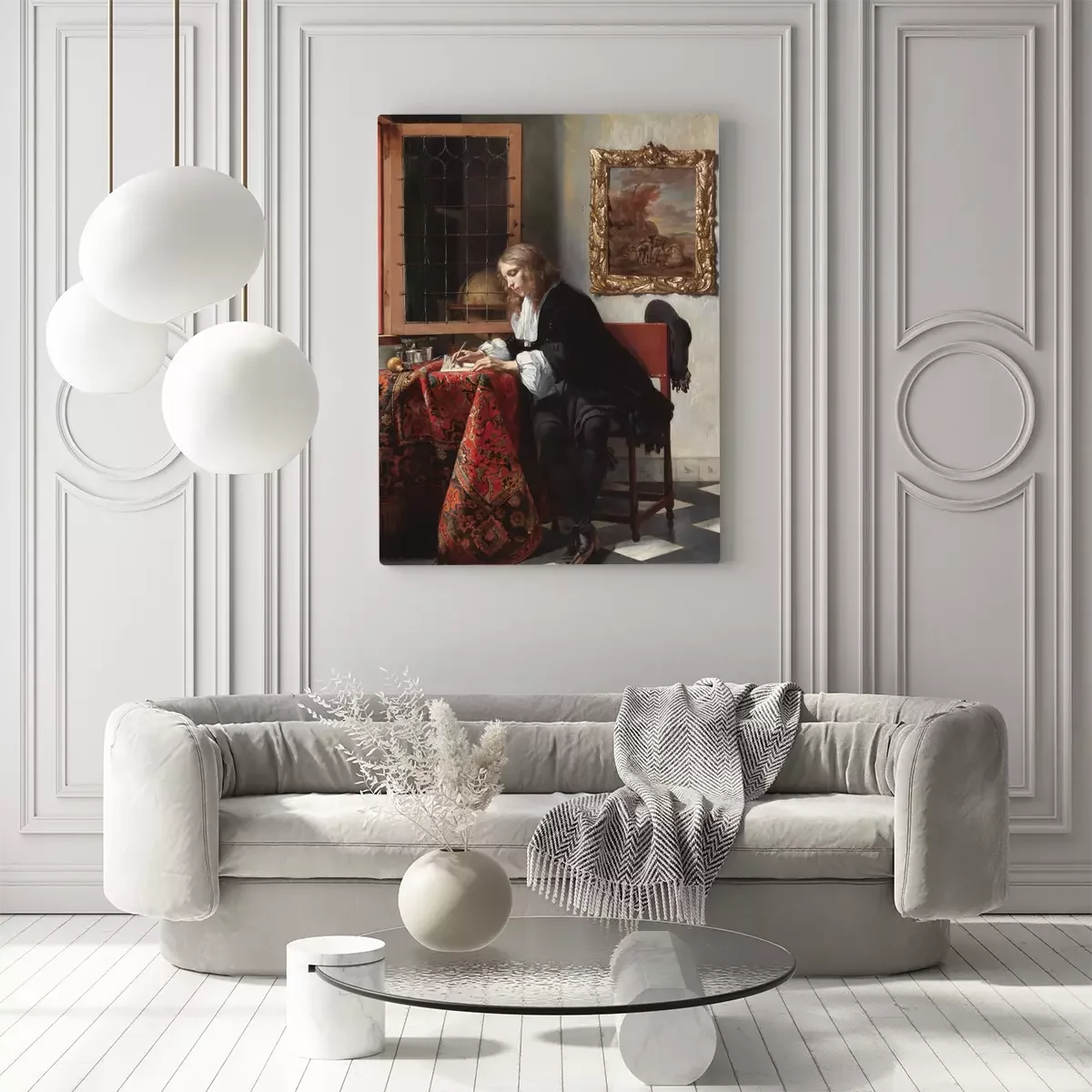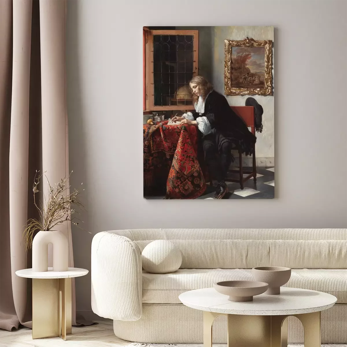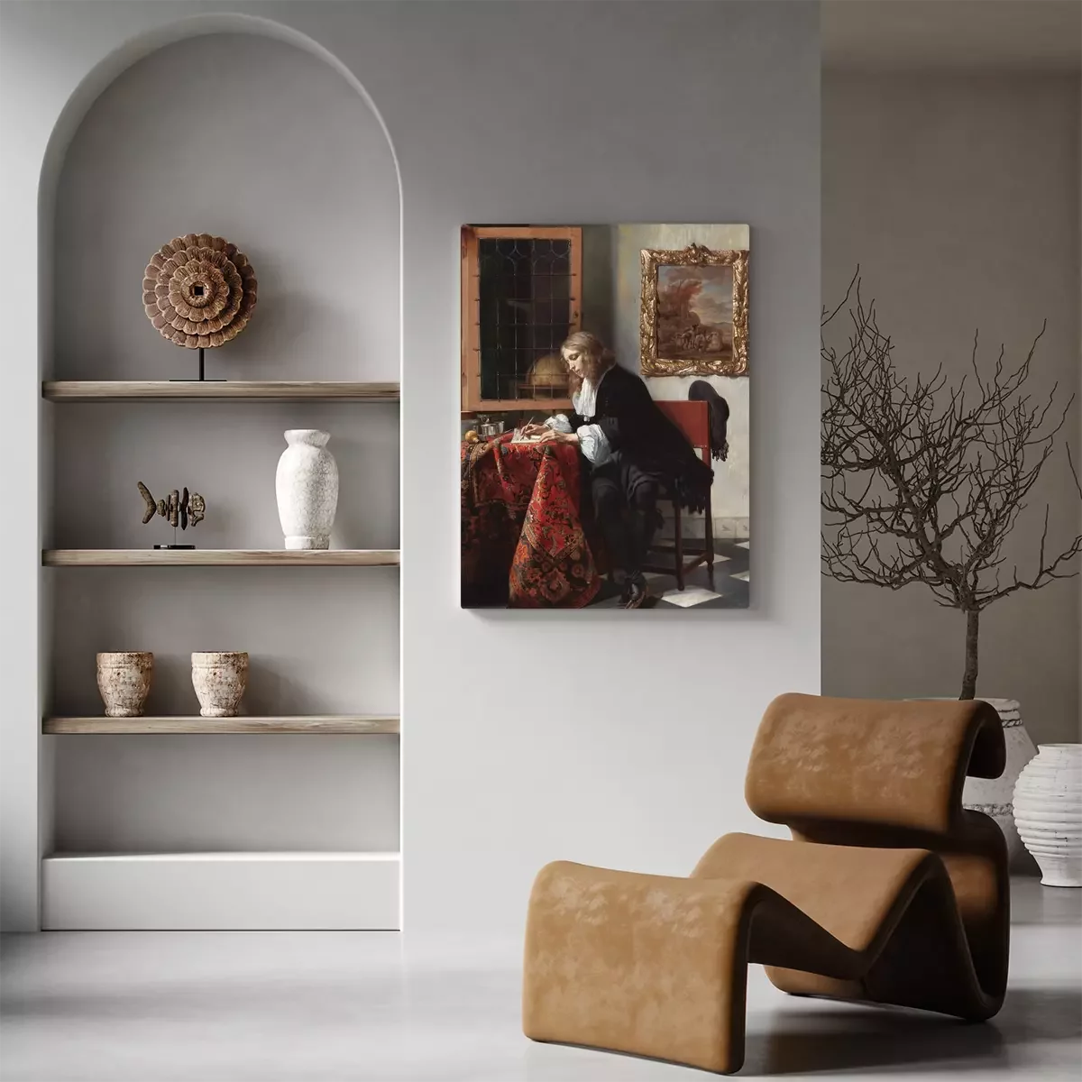Gabriel metsu – der mann, der einen brief schreibt (reproduktion)