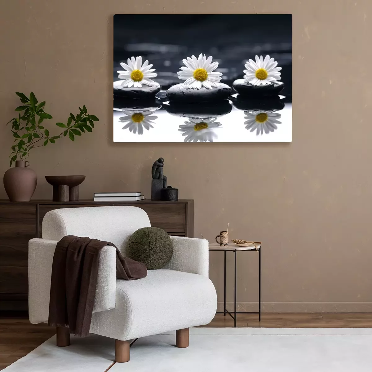 Zen Steine ​​und weiße Orchideen mit Reflexion