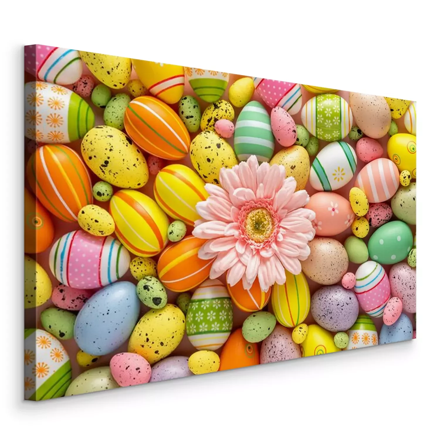 Bild: Gänseblümchen vor dem Hintergrund der Ostereier