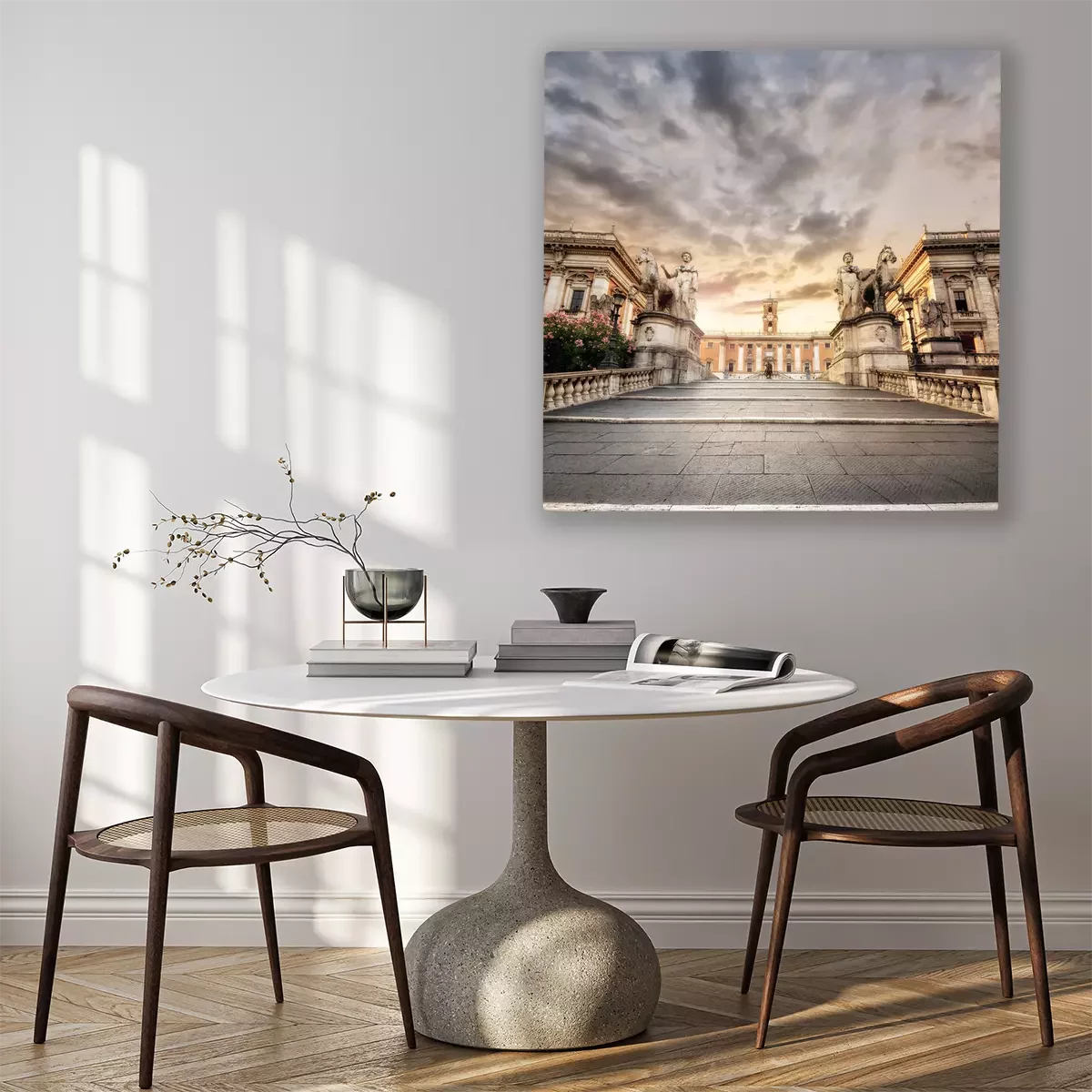 Das Motiv wird auf eine qualitativ hochwertige Leinwand gedruckt, die auf einen Blendrahmen gezogen wird. Da der Aufdruck die Seitenkanten bedeckt, muss das Bild nicht zusätzlich eingerahmt werden. Wir empfehlen außerdem Kompositionen aus mehreren Bildern, die ein harmonisches Ganzes bilden.