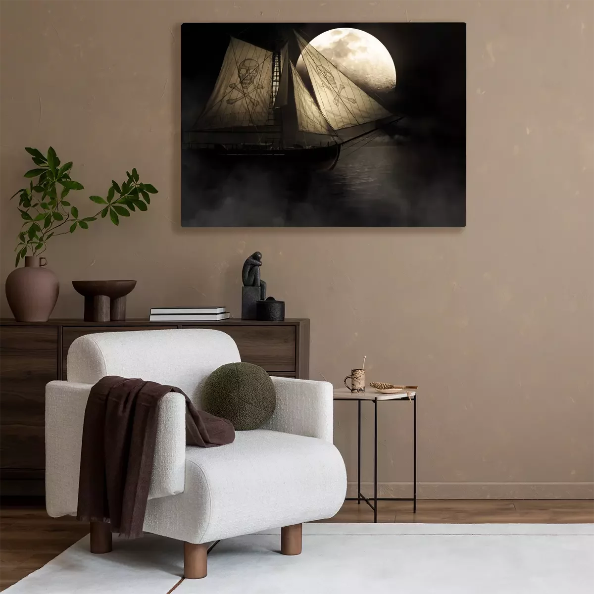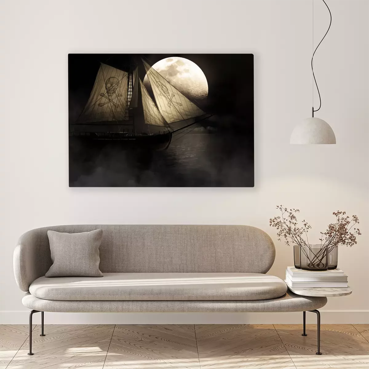 Bild: Geheimnisvolles Schiff vor dem Hintergrund des Mondes
