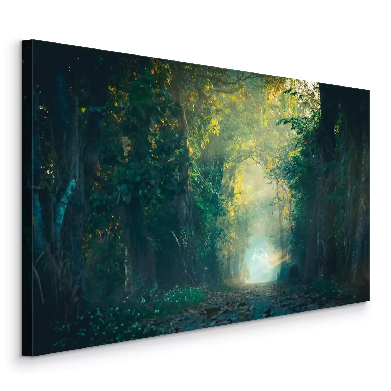 Bild Gehen Sie an einem sonnigen Tag den Waldweg entlang