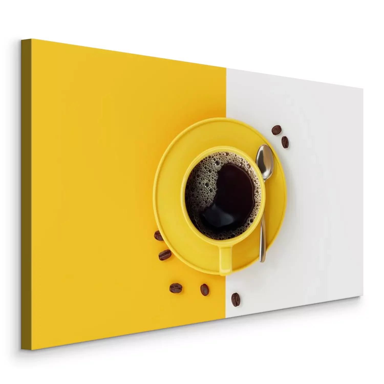 Bild: Gelbe Tasse Kaffee auf zweifarbigem Hintergrund