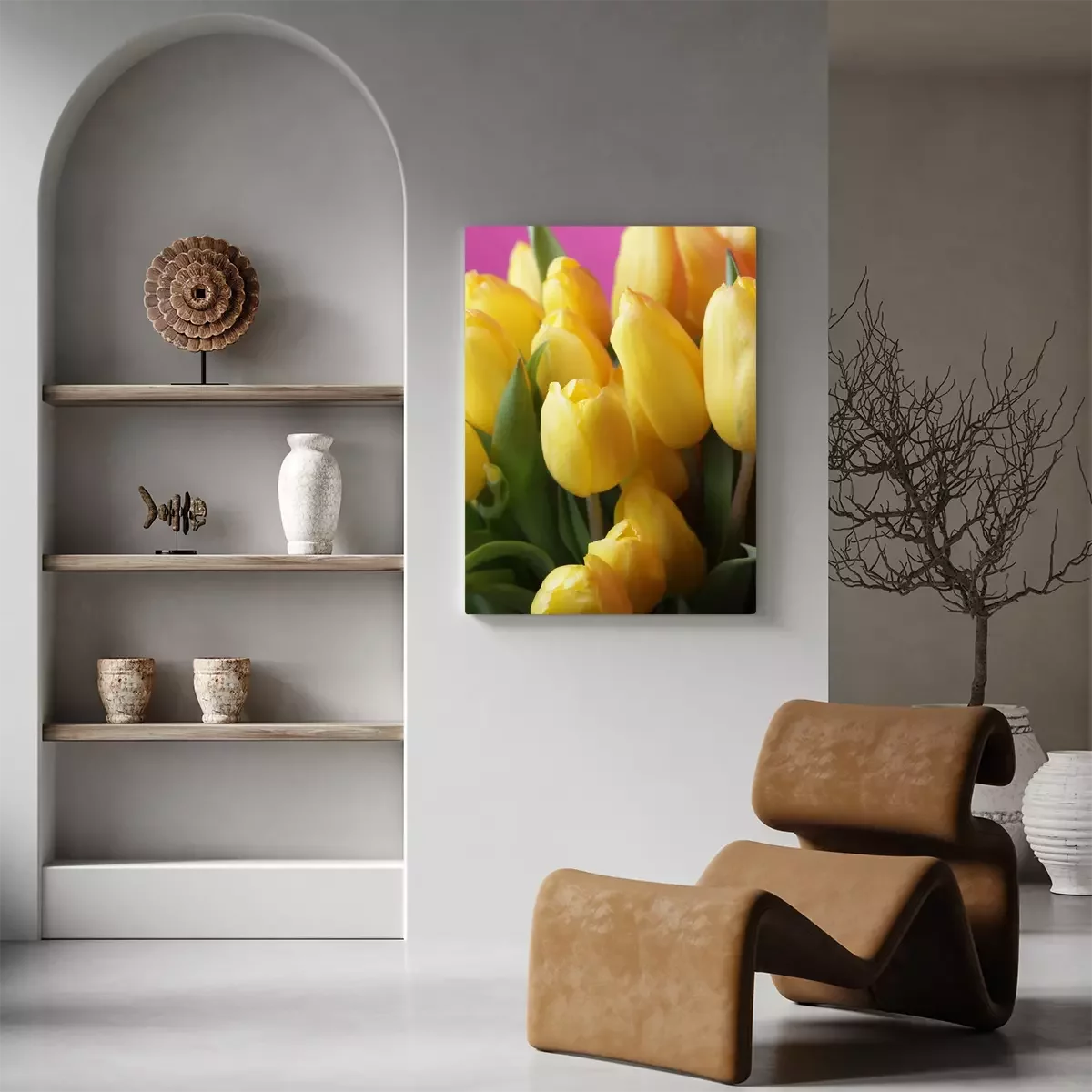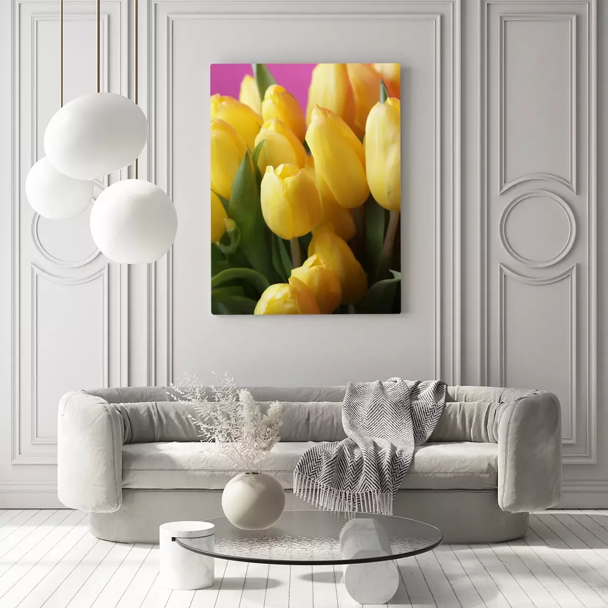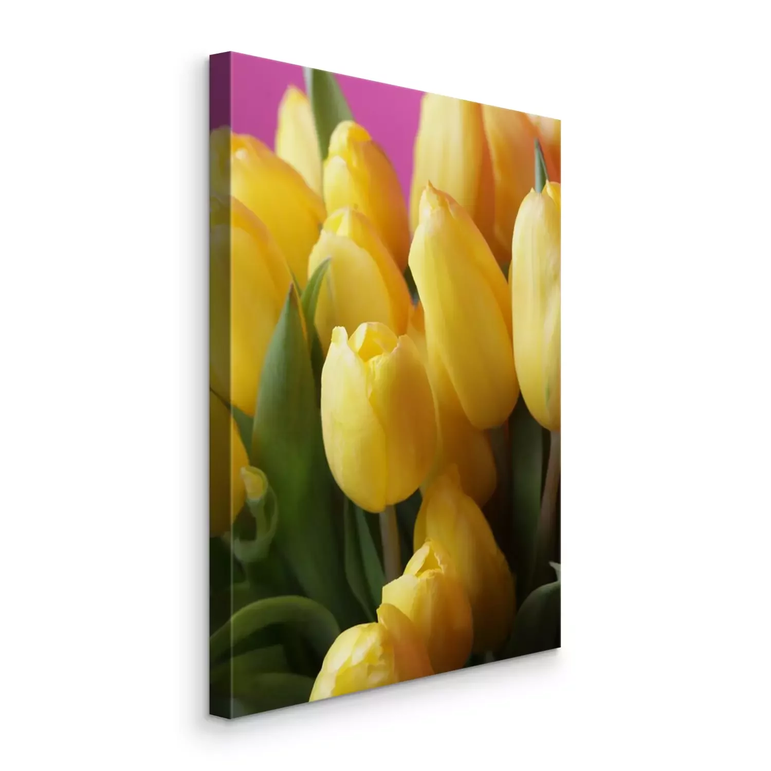 Gelbe Tulpen auf einem rosa Hintergrund