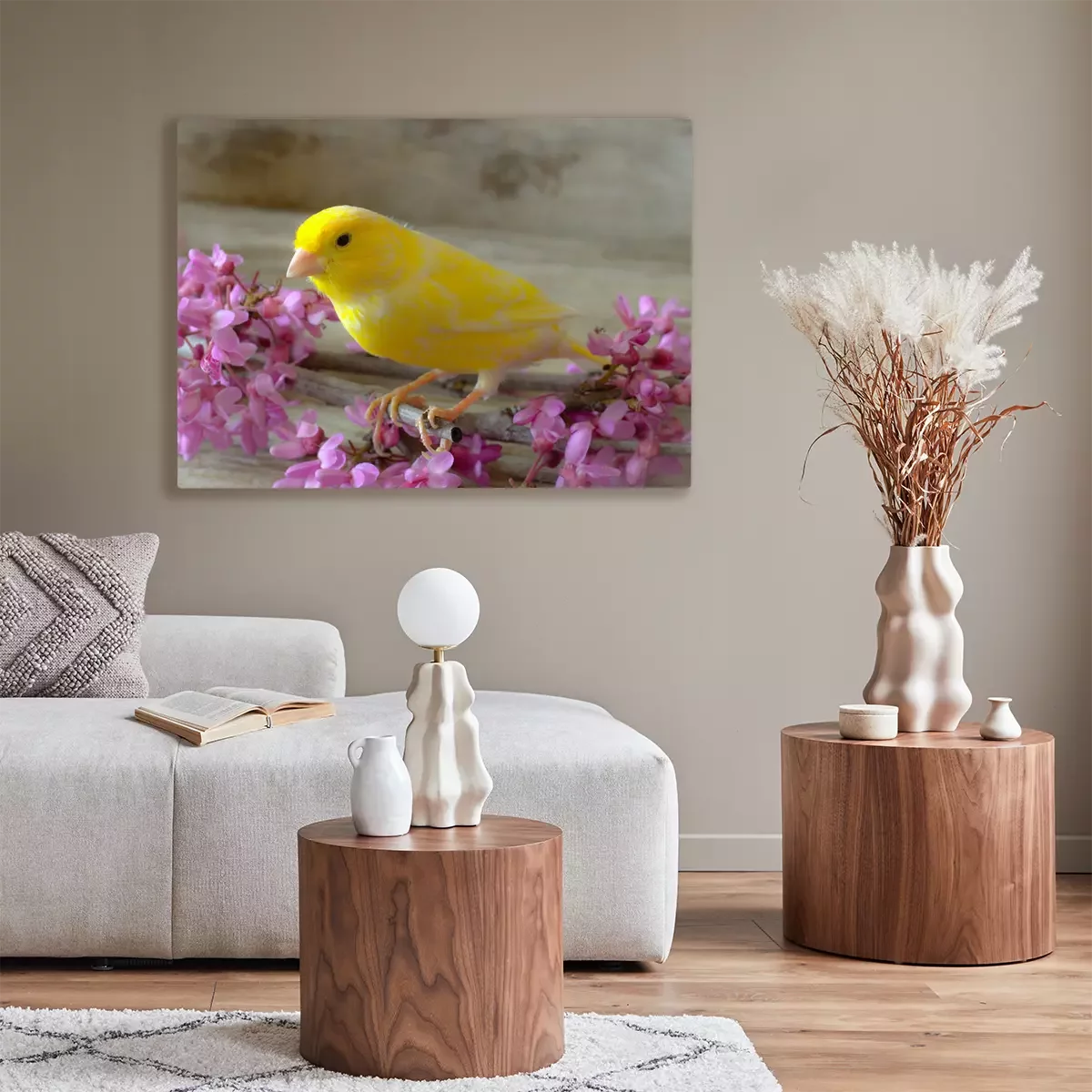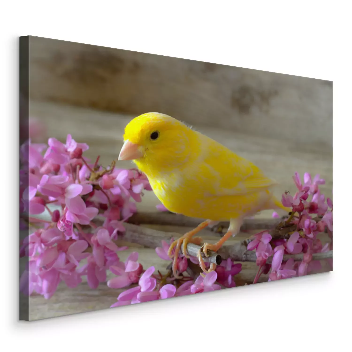 Bild Gelber Vogel und rosa Blumen
