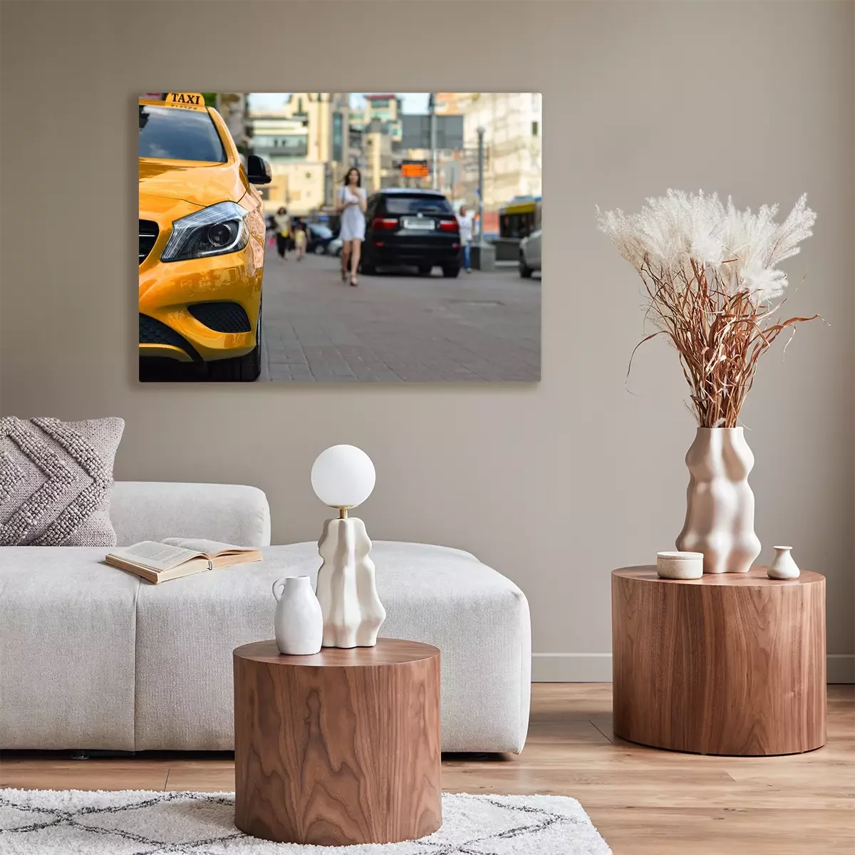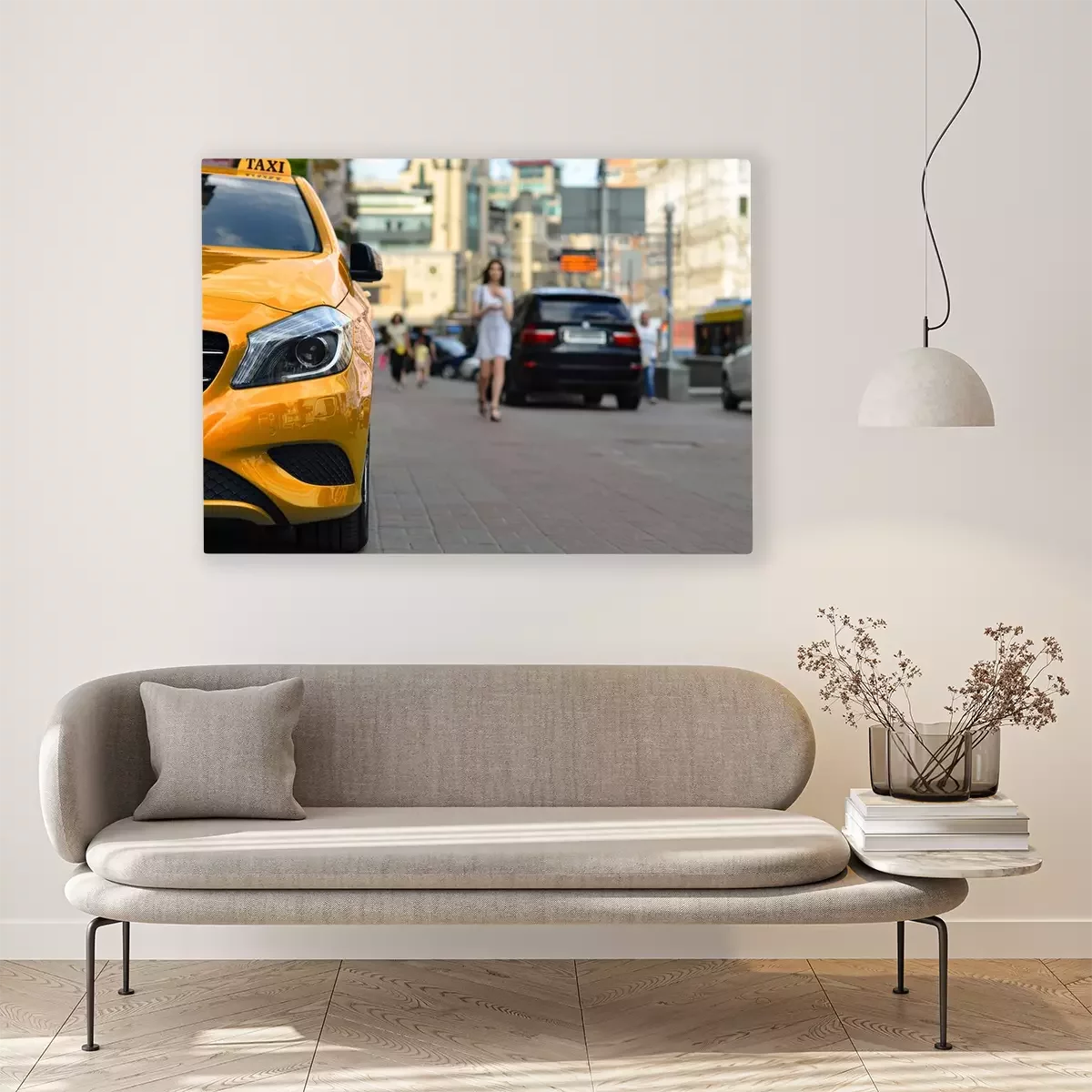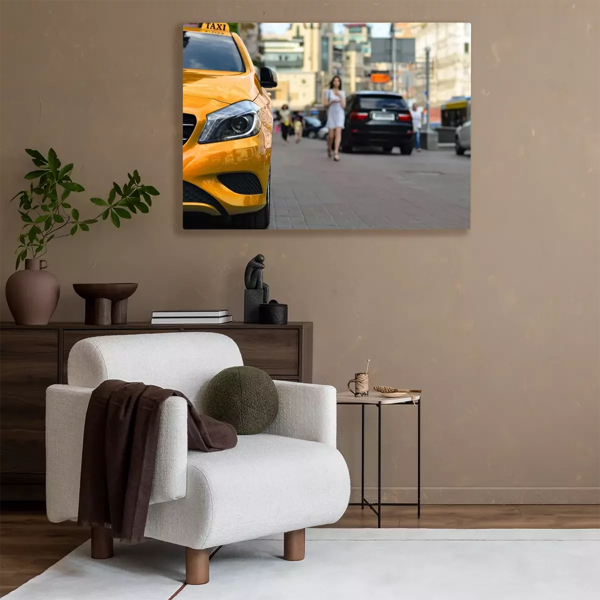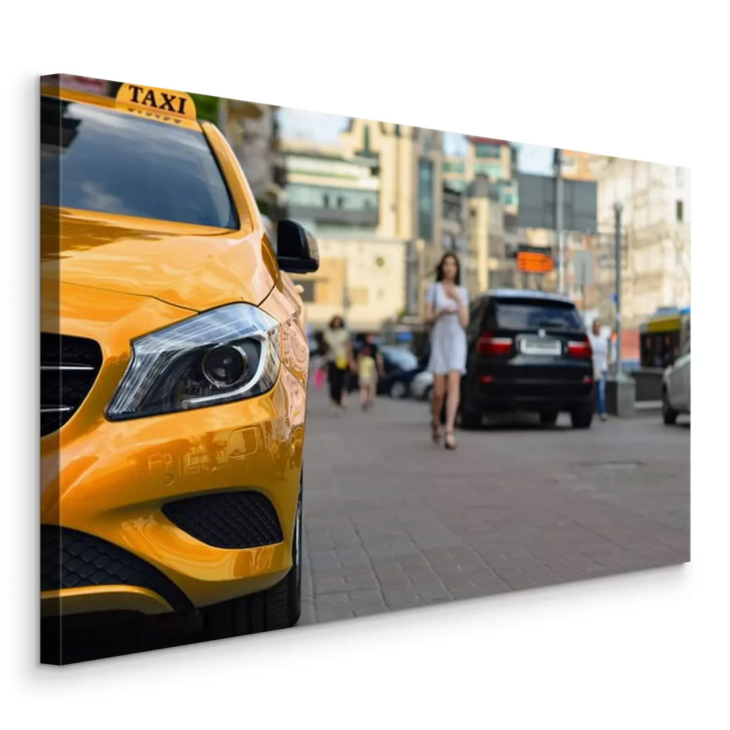 Bild Gelbes Taxi und Frau im Hintergrund