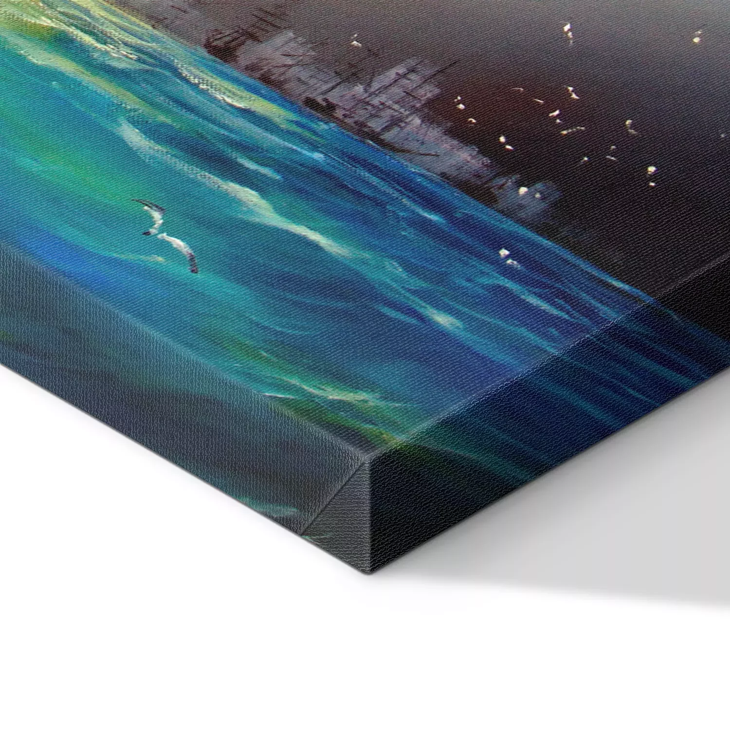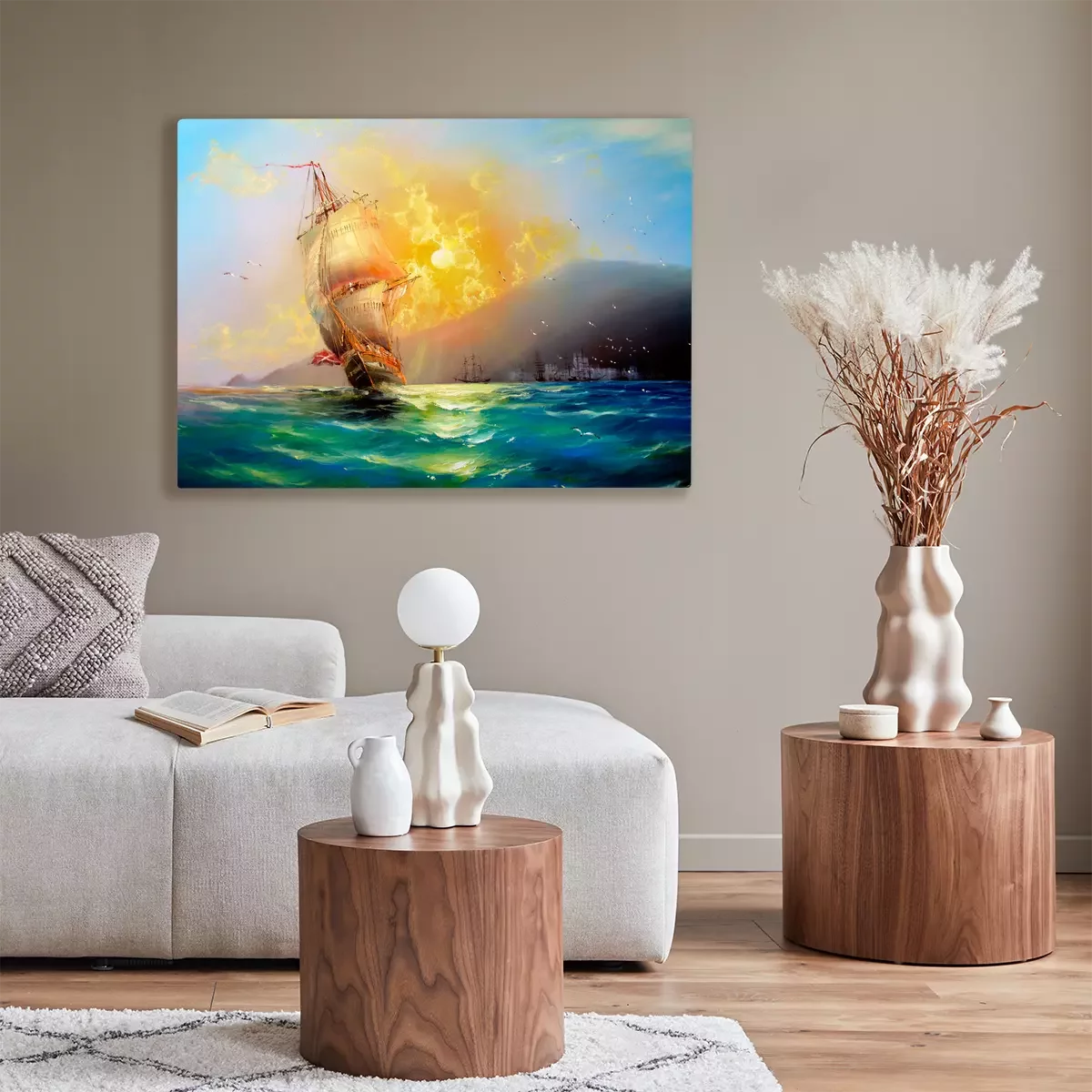 Gemälde eines segelschiffs in warmen, leuchtenden tönen