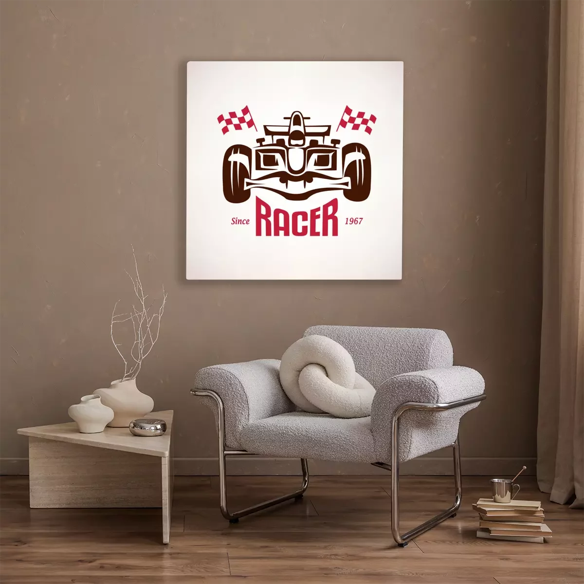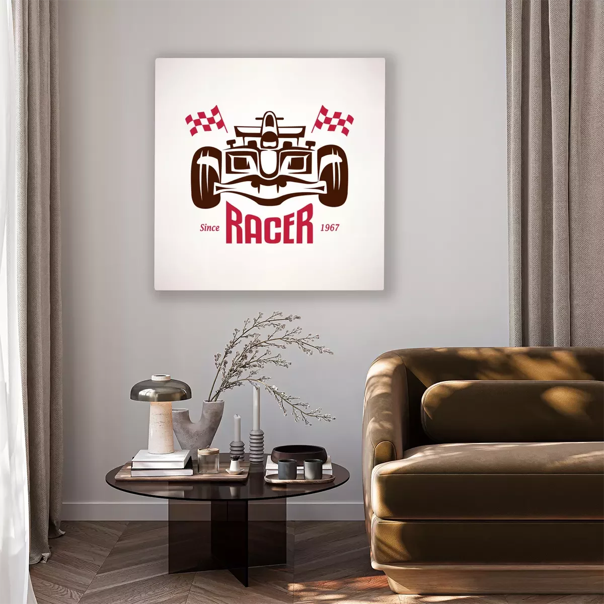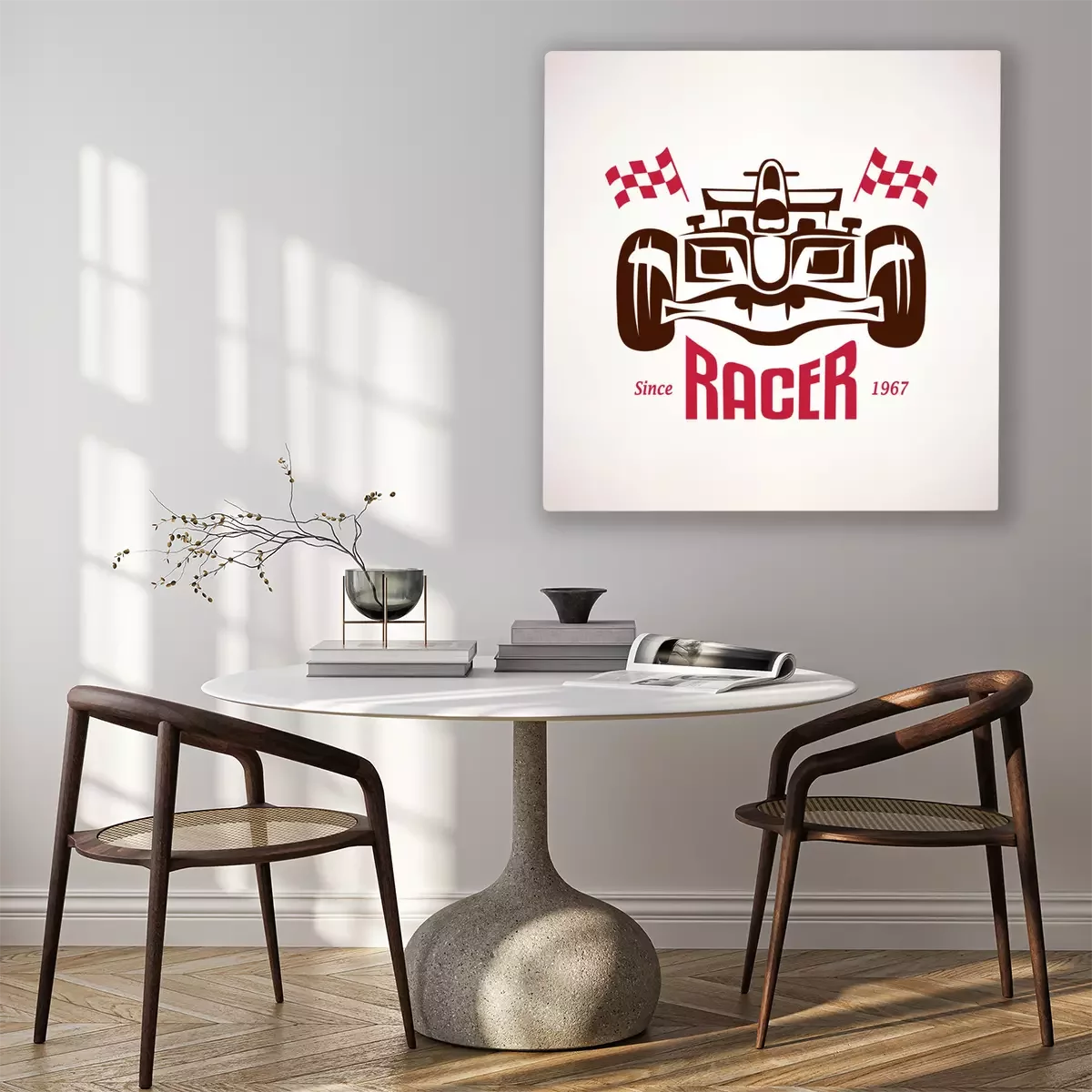 Bild gemalte Formel 1 mit Fahnen