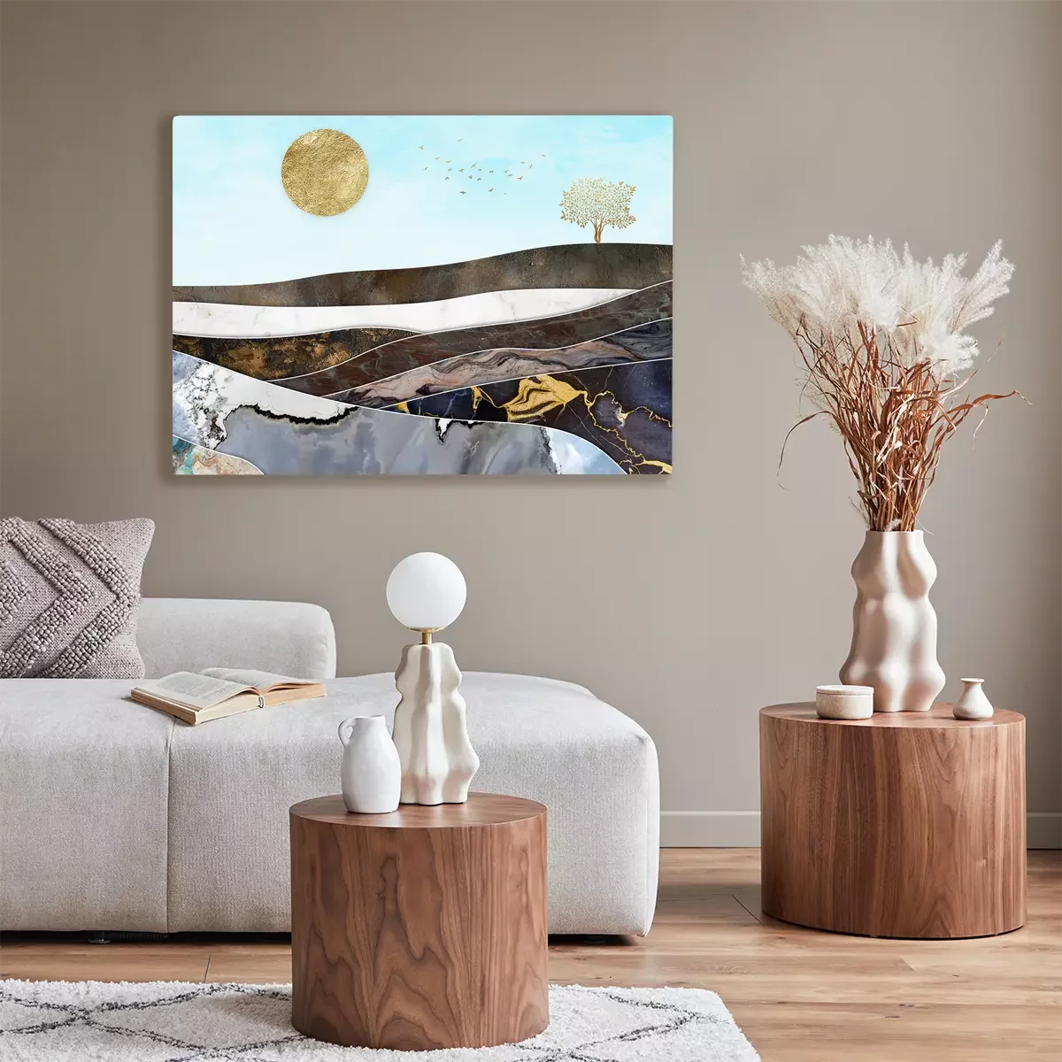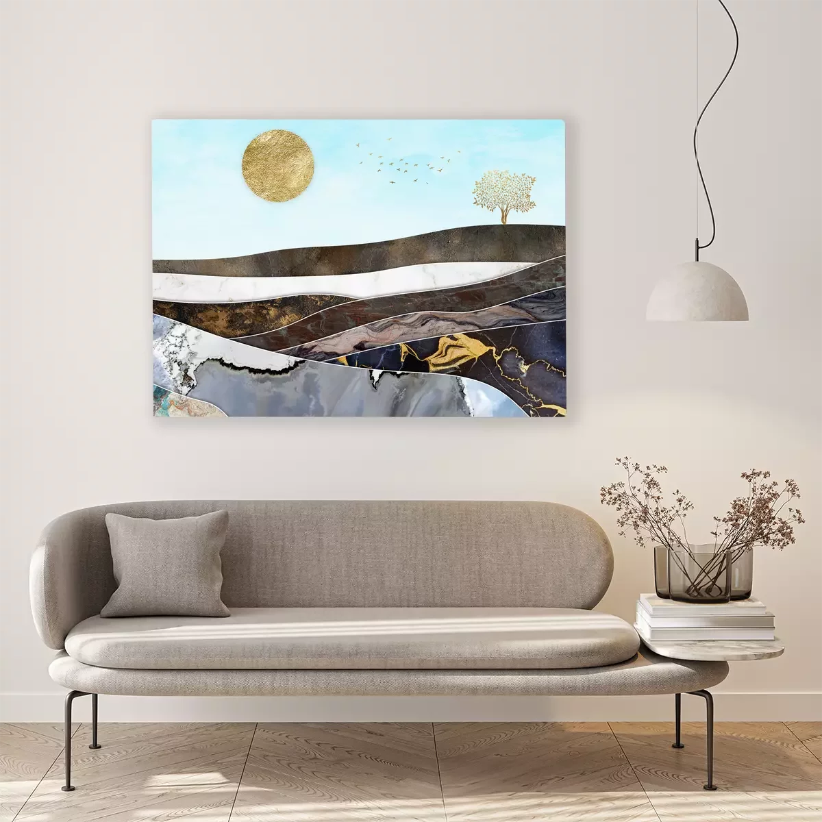 Geometrische landschaft mit marmorstrukturen