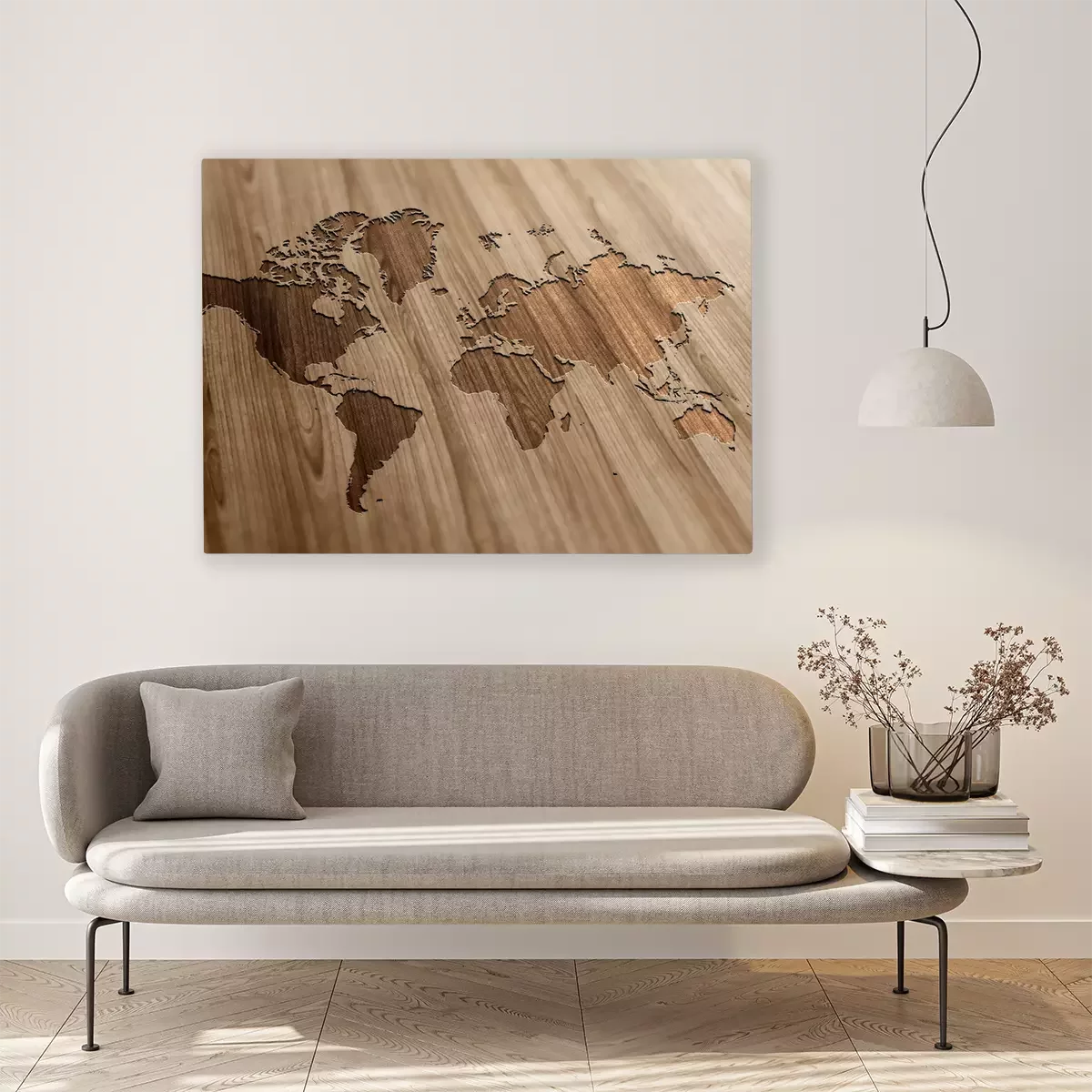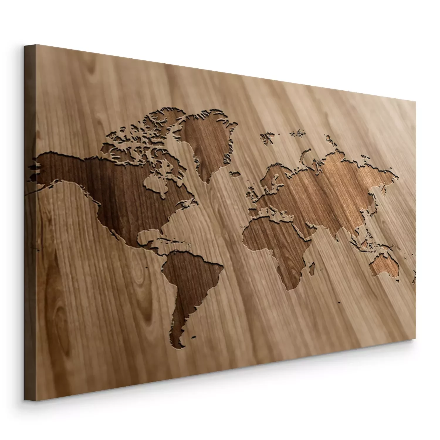 Bild Geschnitzte Weltkarte auf Holz