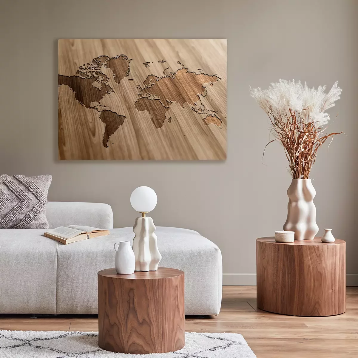 Bild: Geschnitzte Weltkarte auf Holz