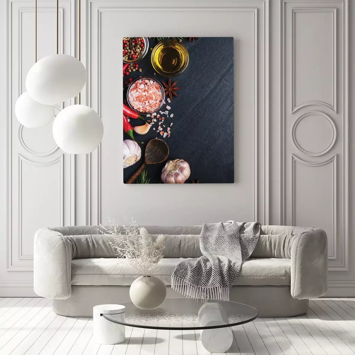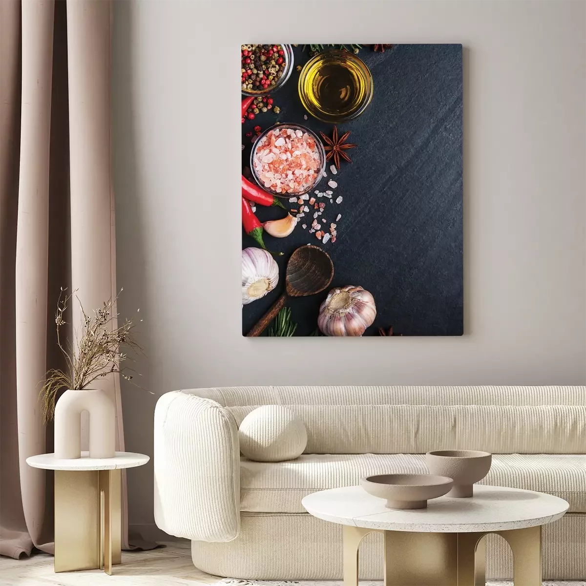 Gewürze mit olivenöl, knoblauch und scharfer chili