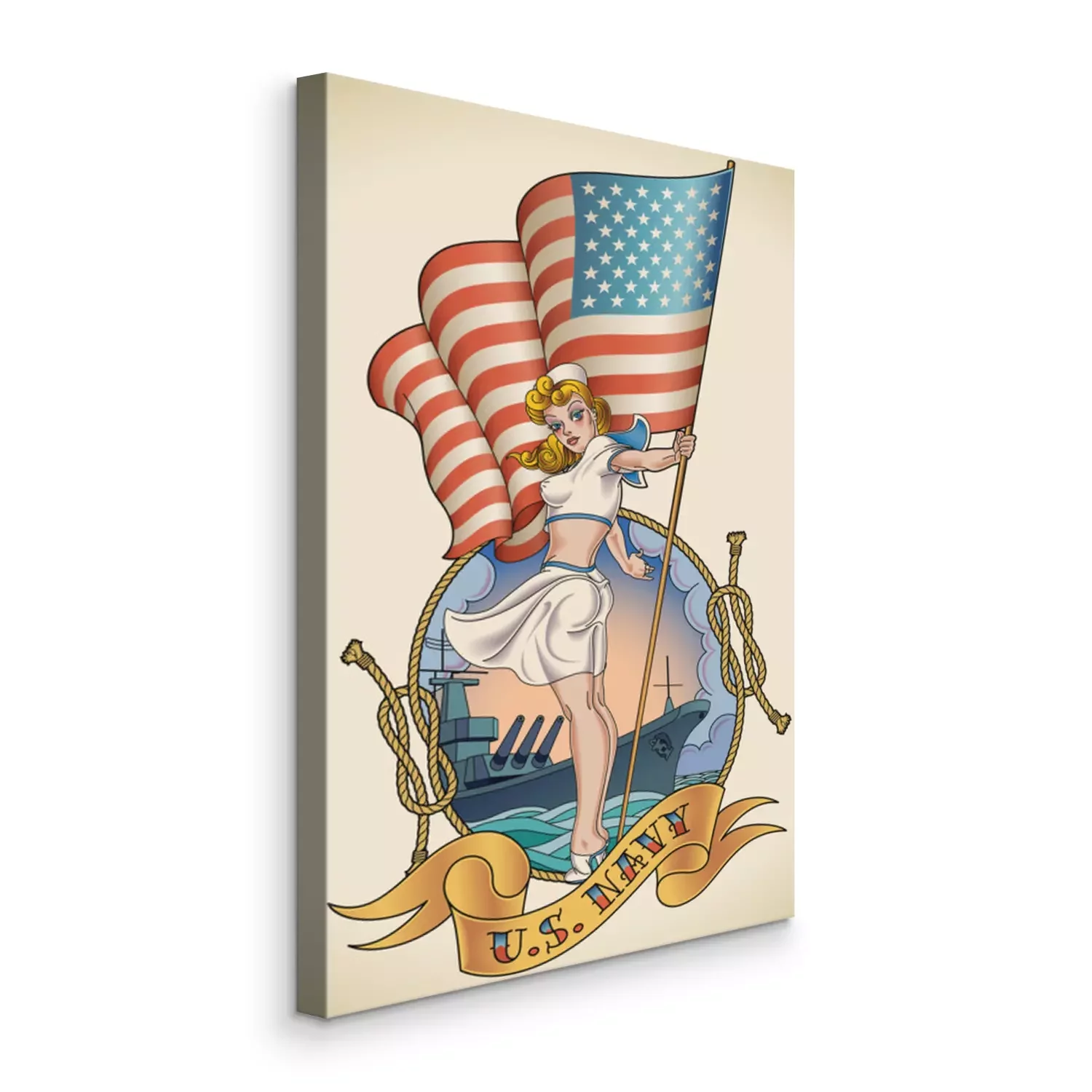 Bild Gezeichnetes Mädchen vor dem Hintergrund des Marineschiffs